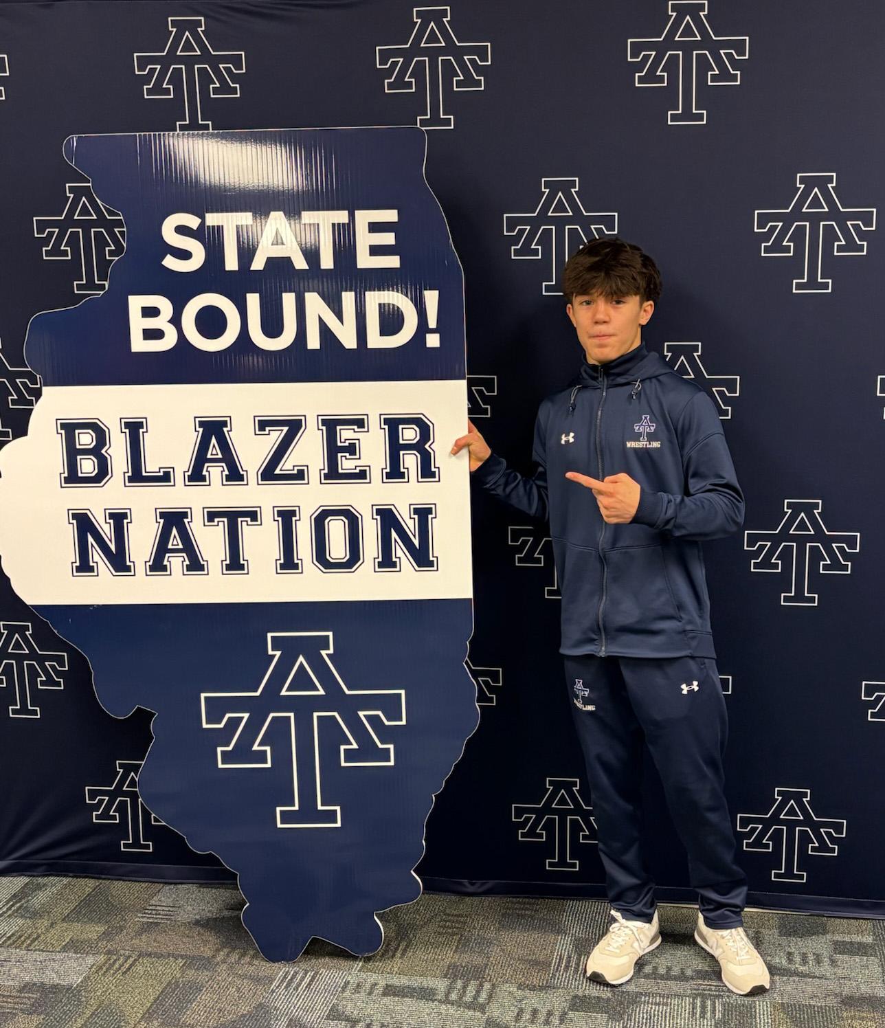 On Feb. 18, Addison Trail hosted a State send-off celebration for sophomore Nikolas Duarte (pictured above), who competed in the Illinois High School Association (IHSA) Boys Wrestling State Tournament (in the 120-pound division).