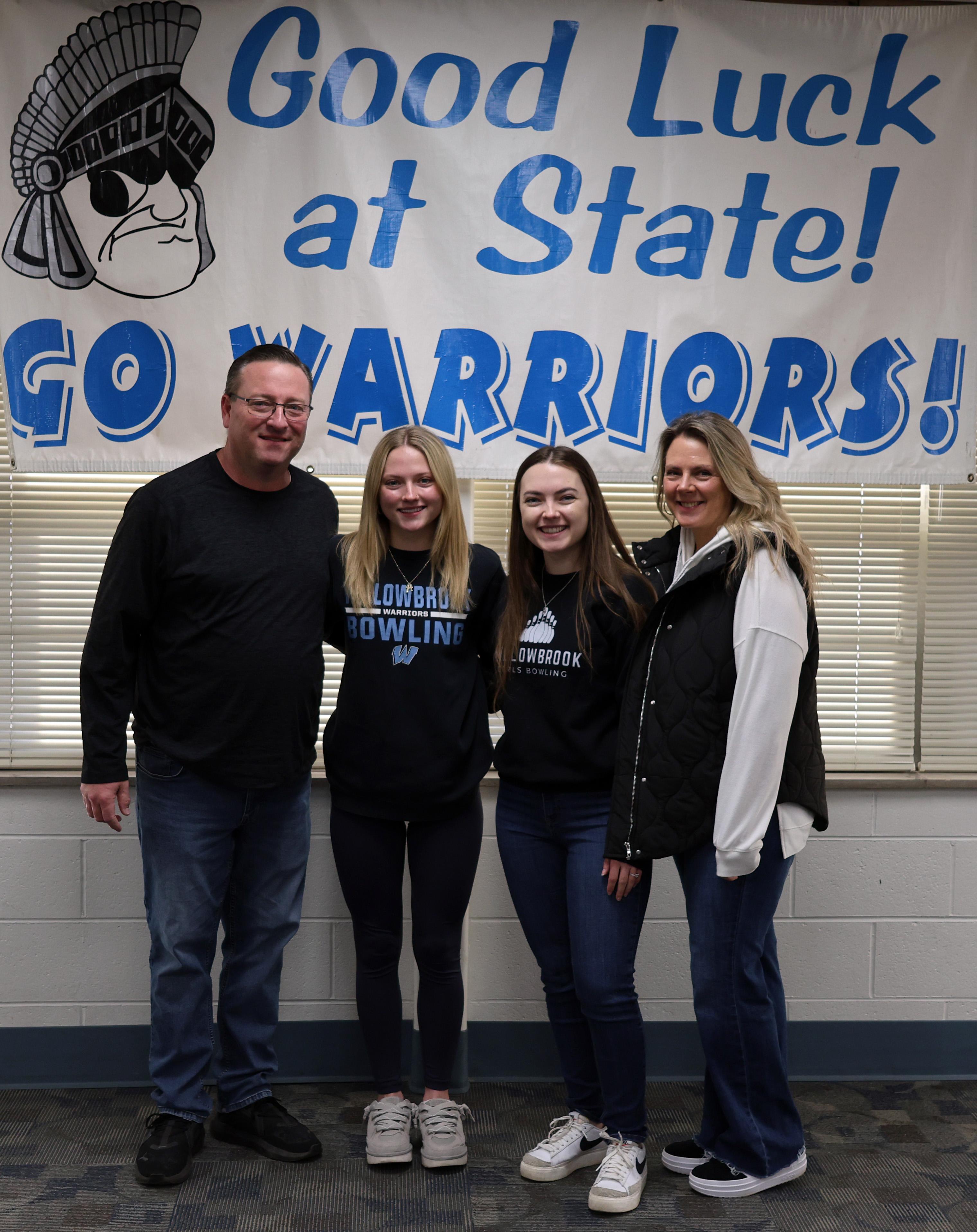On Feb. 19, Willowbrook hosted a State send-off celebration for junior Elizabeth Pettinger, who competed in the Illinois High School Association (IHSA) Girls Bowling State Tournament. She is pictured (second from left) with her family, including her sister, Katie, who is a coach for the Willowbrook Girls Bowling Team.