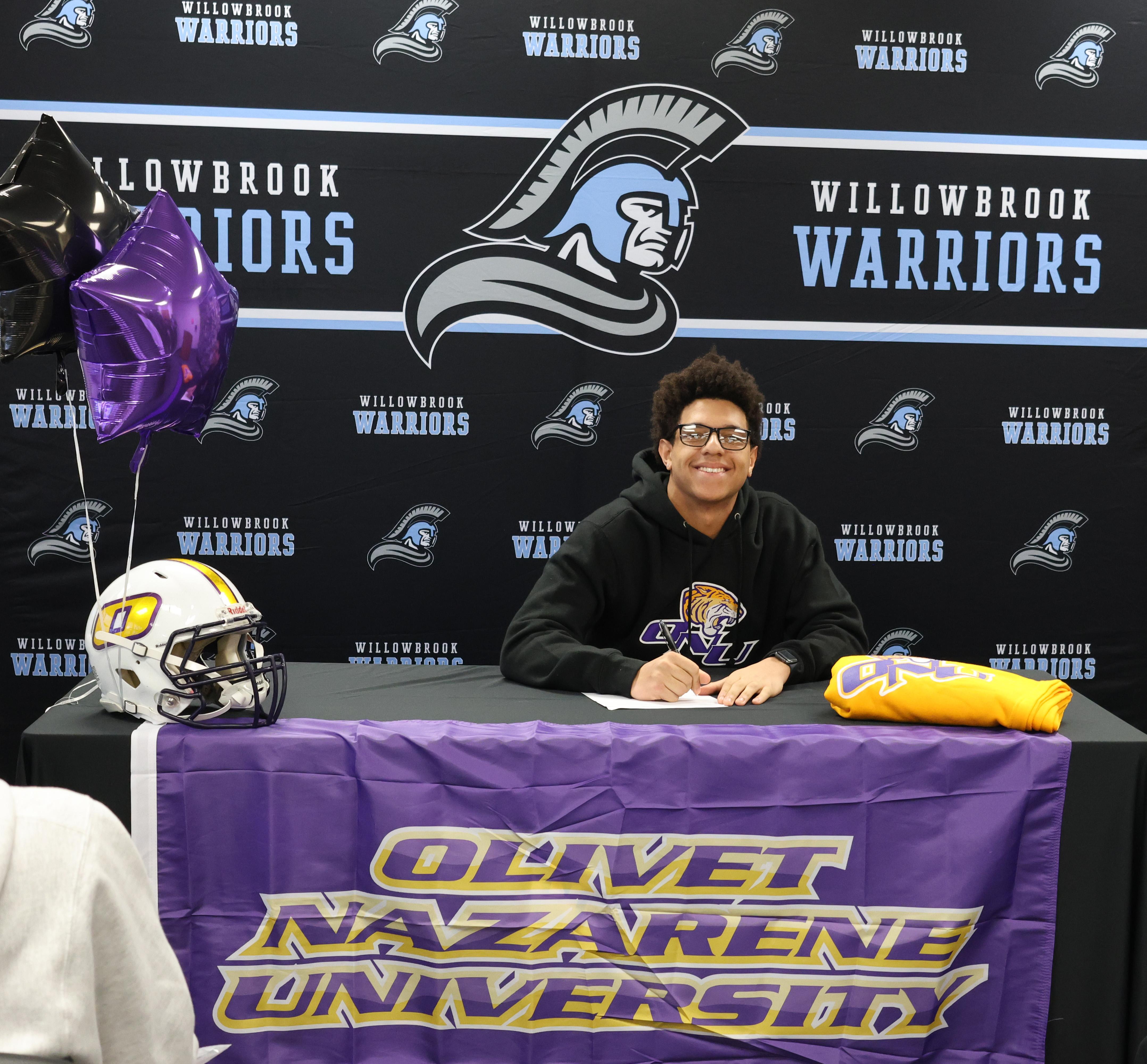 On Feb. 18, Willowbrook hosted a College Signing Day for senior Santino Whitehead, who has committed to join Olivet Nazarene University as a member of the Football Team.
