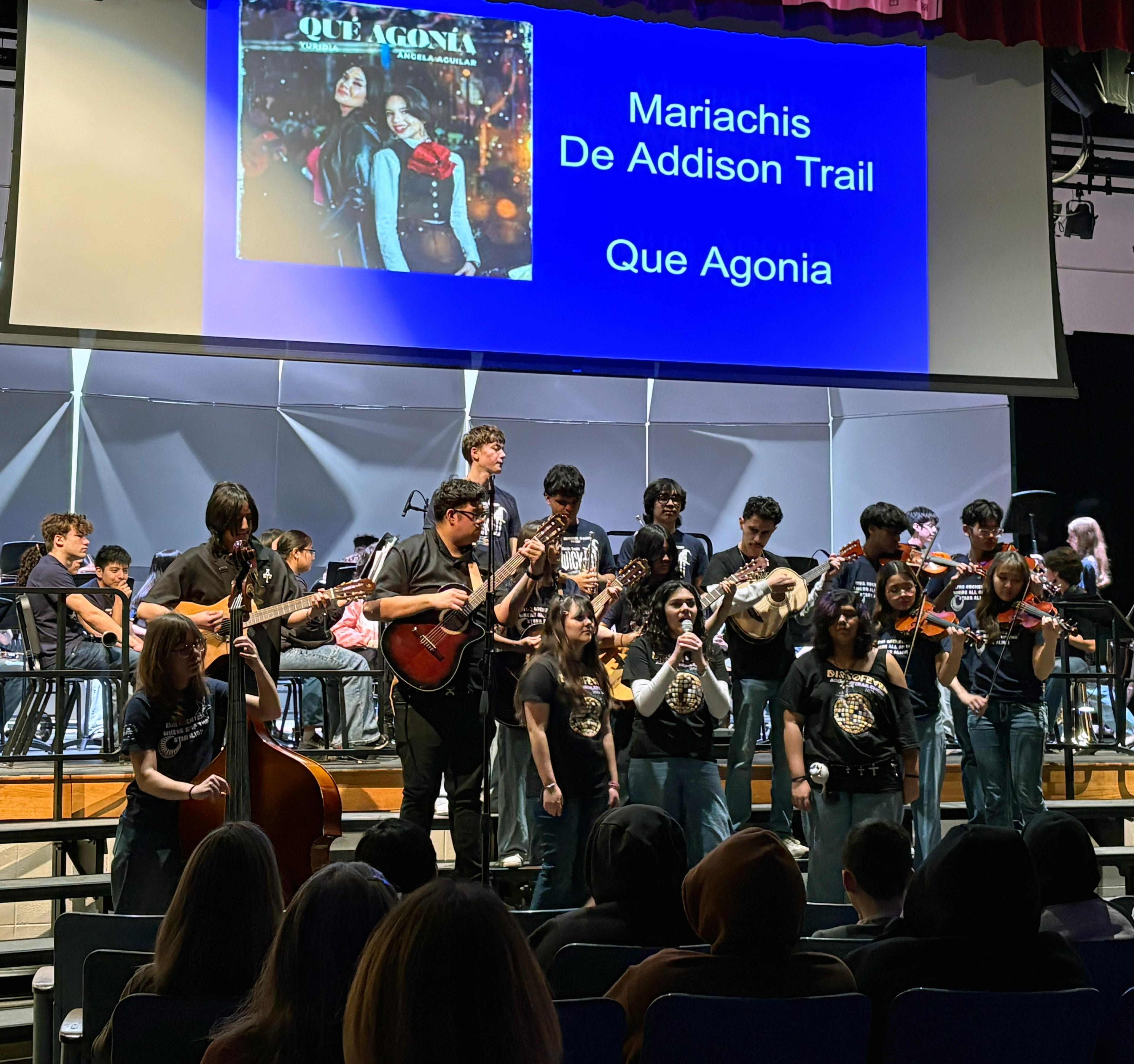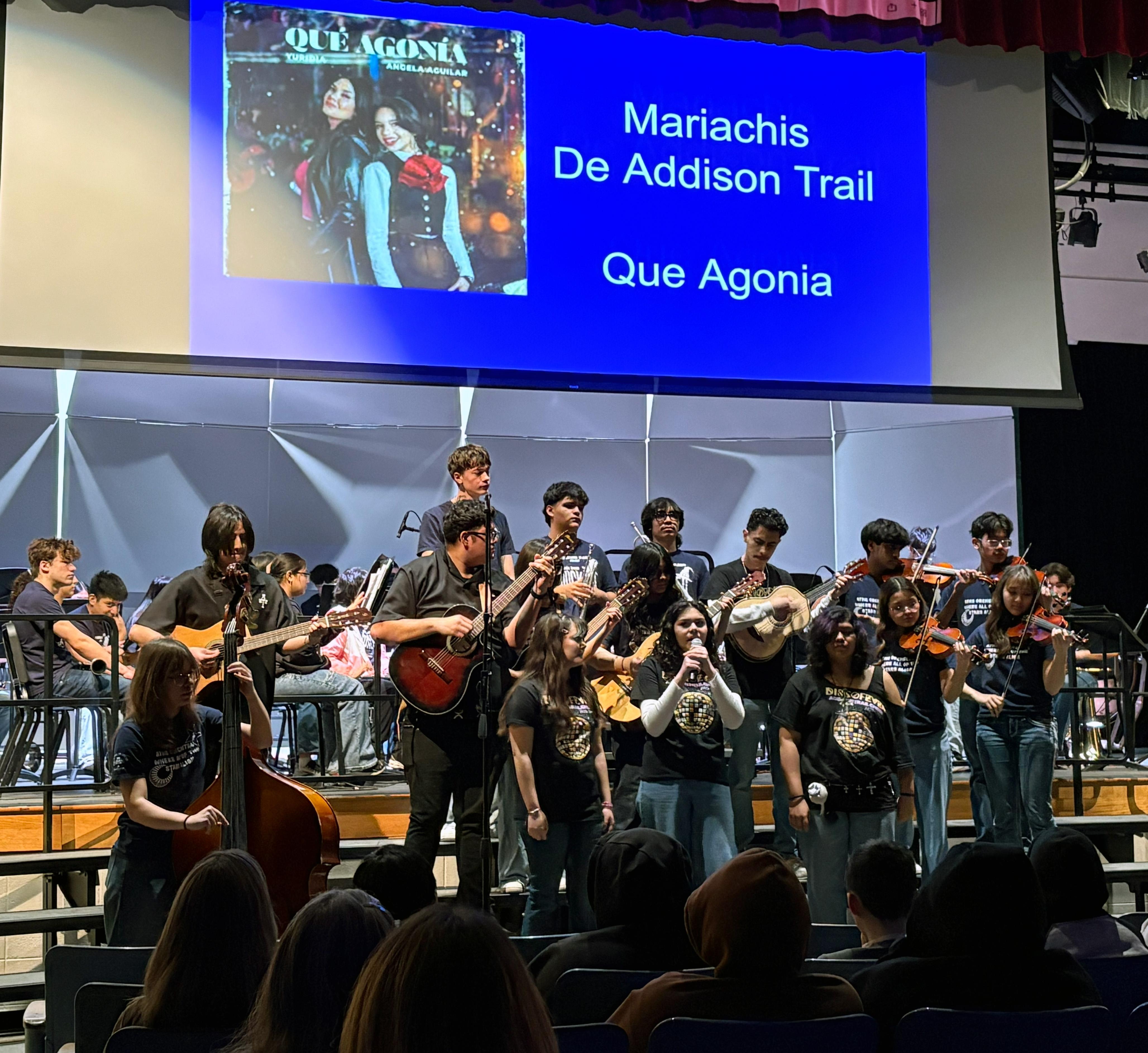 During the assembly, Addison Trail students and staff enjoyed performances by the school’s Symphony Orchestra, Chamber Strings, Concert Choir, Wind Ensemble, Guitar Ensemble and Mariachi Band, as well as pieces composed by students enrolled in Music Production. To view a photo gallery from the event, see the images above.