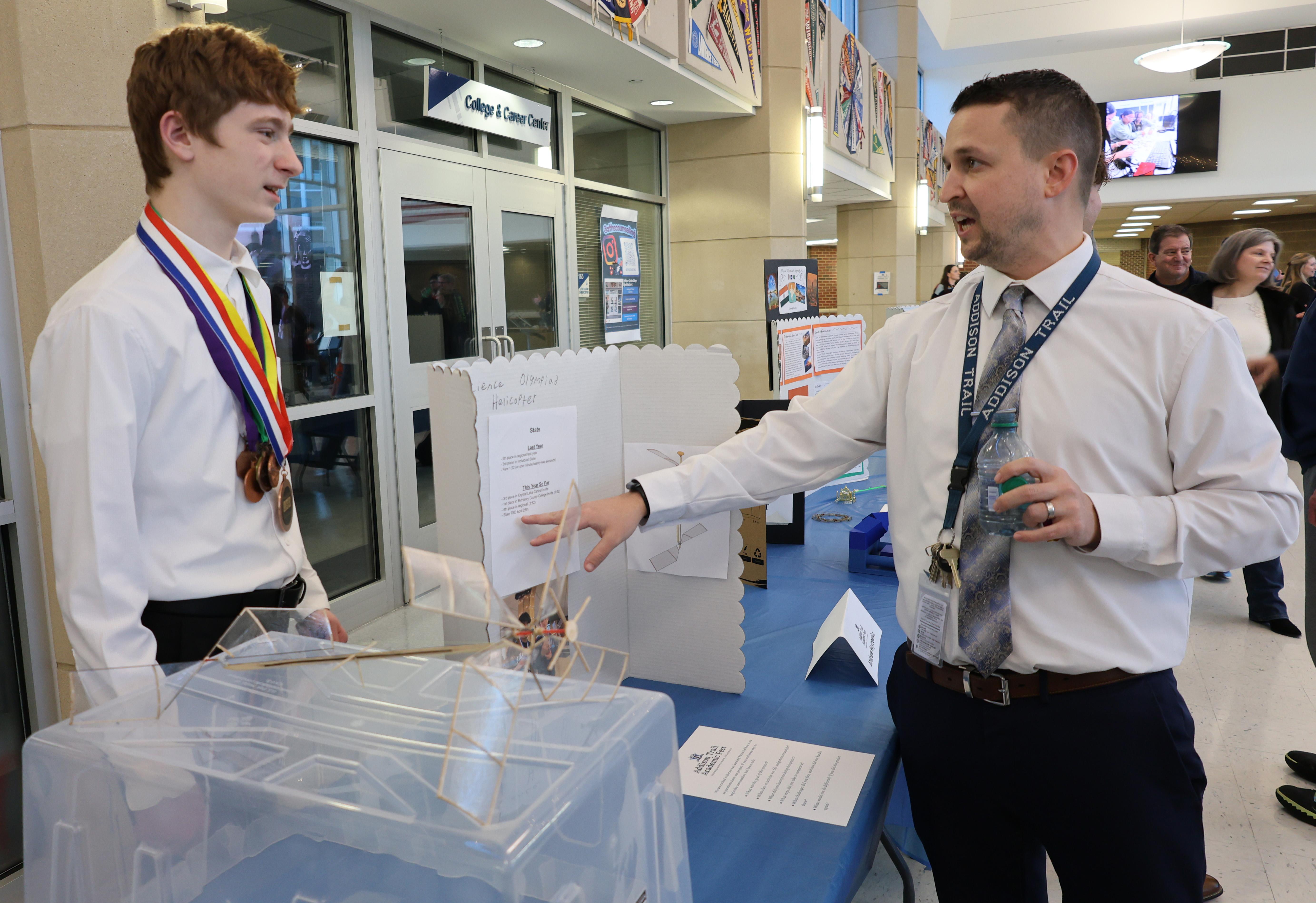 On March 19, more than 100 Addison Trail students presented their best work during the school’s first Academic Fest. Items included research projects, complex math solutions, art pieces, engineering designs and more.