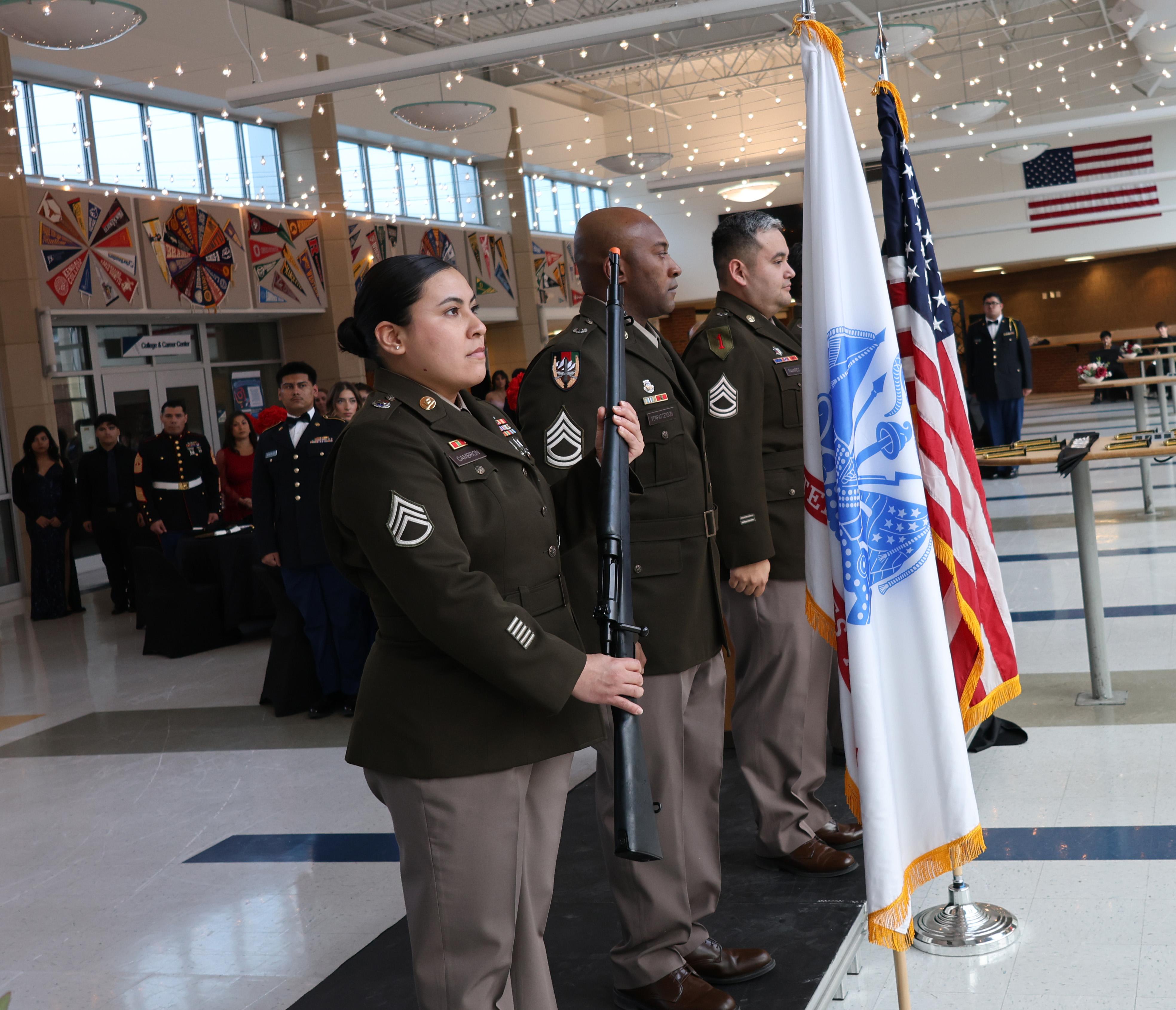 On March 20, Addison Trail’s Blazer Battalion U.S. Army Junior Reserve Officers’ Training Corps (JROTC) program hosted the school’s inaugural Military Ball to honor and recognize the program and the students (referred to as cadets) who are enrolled in the course.
