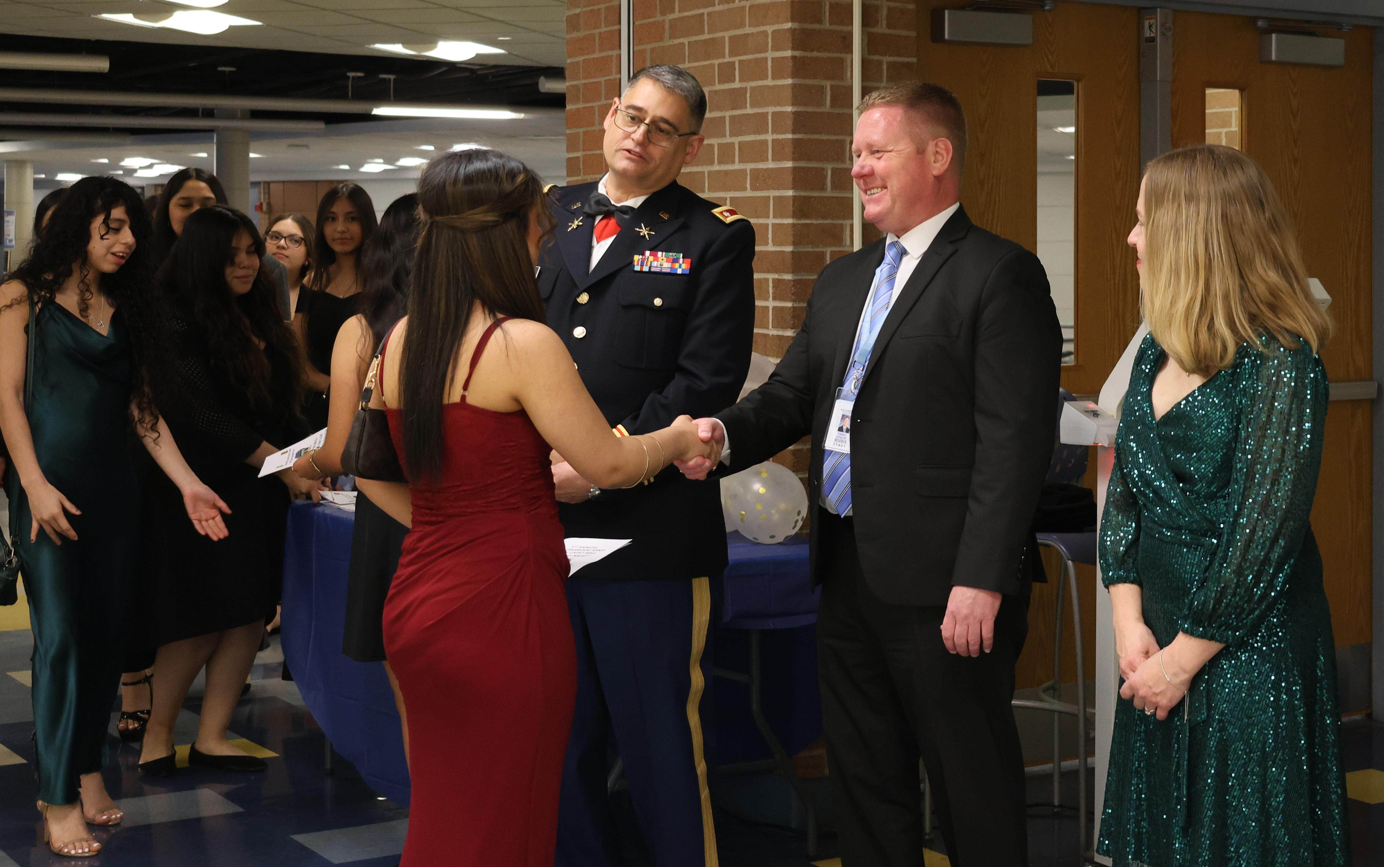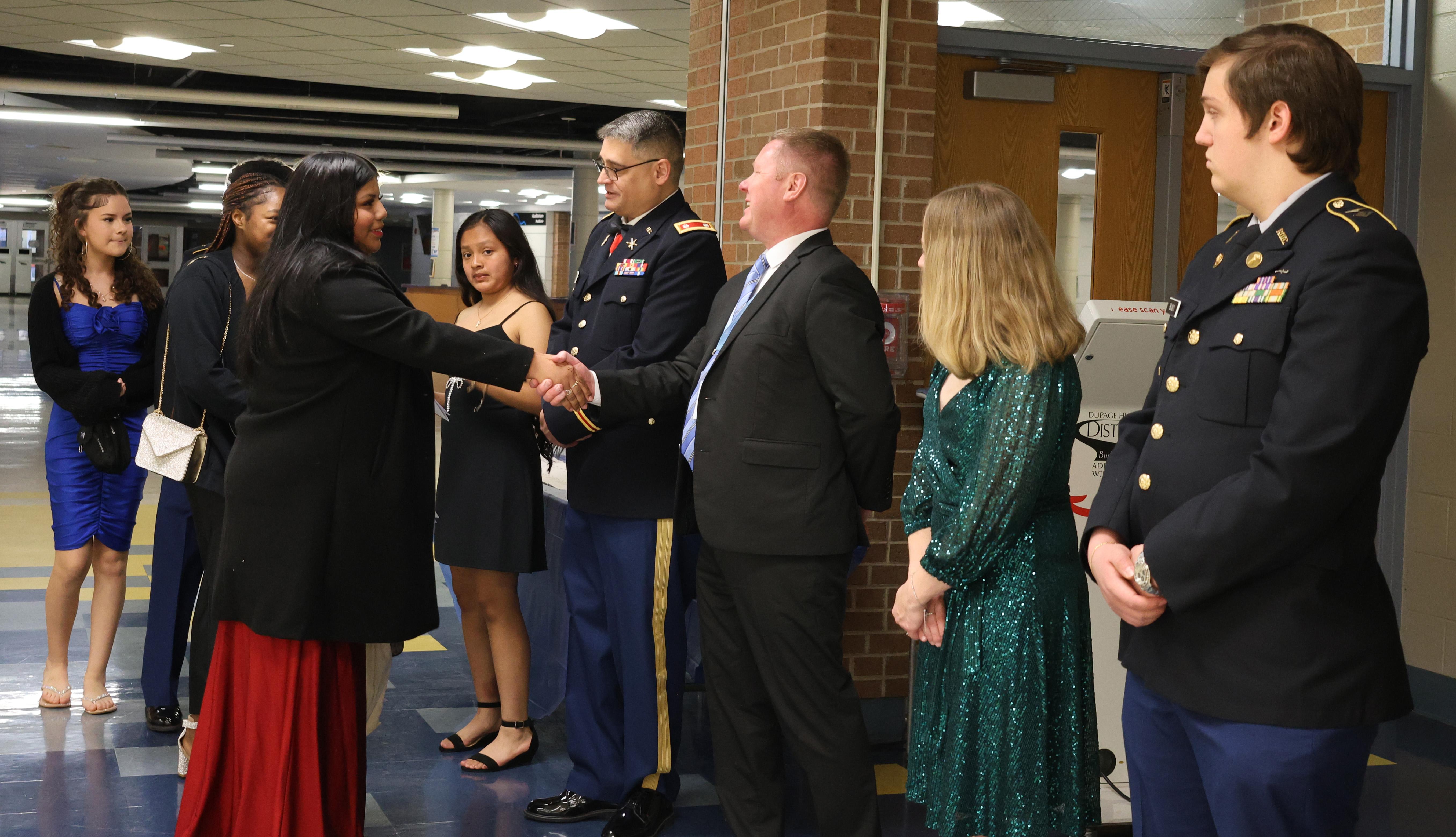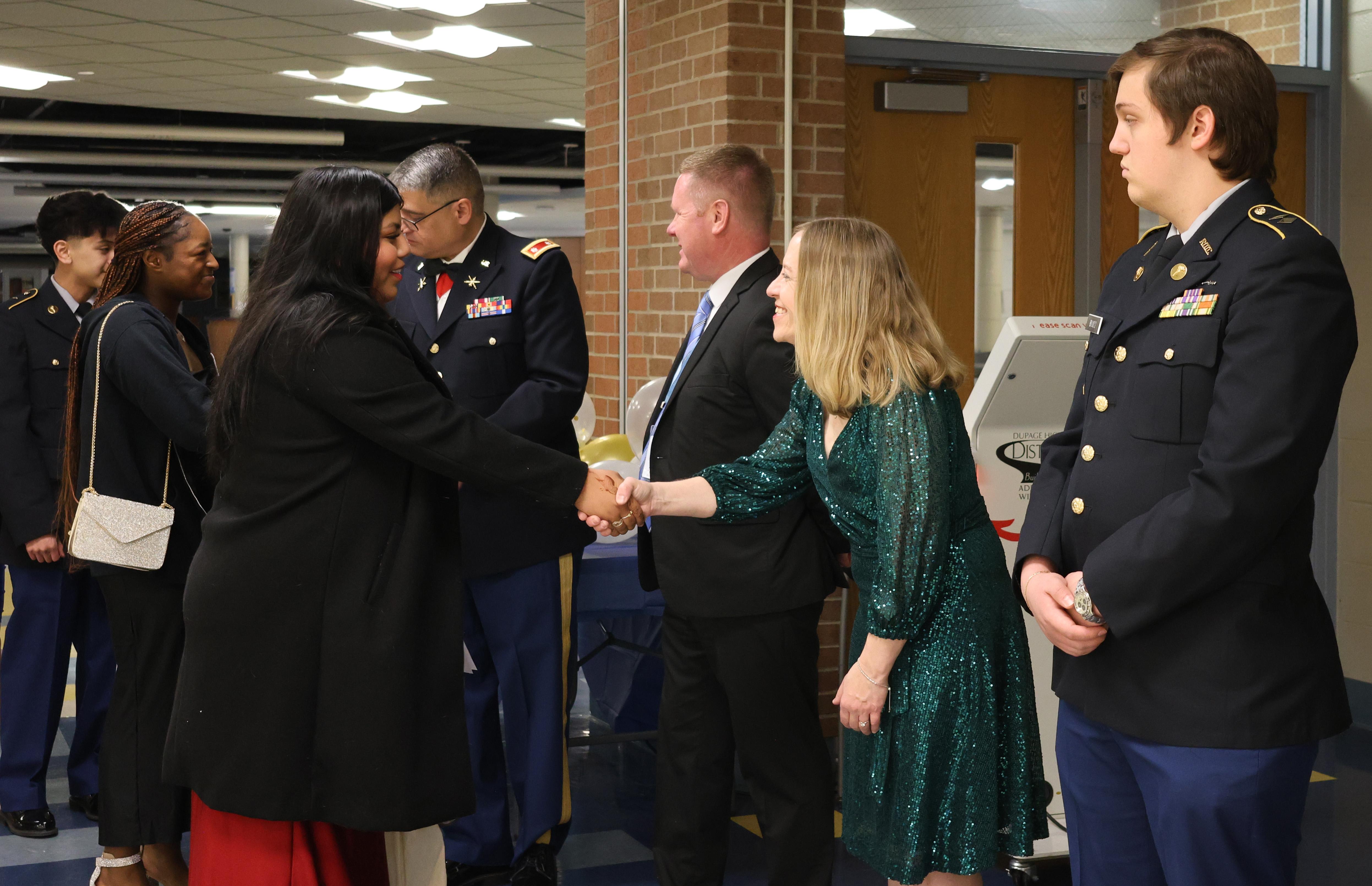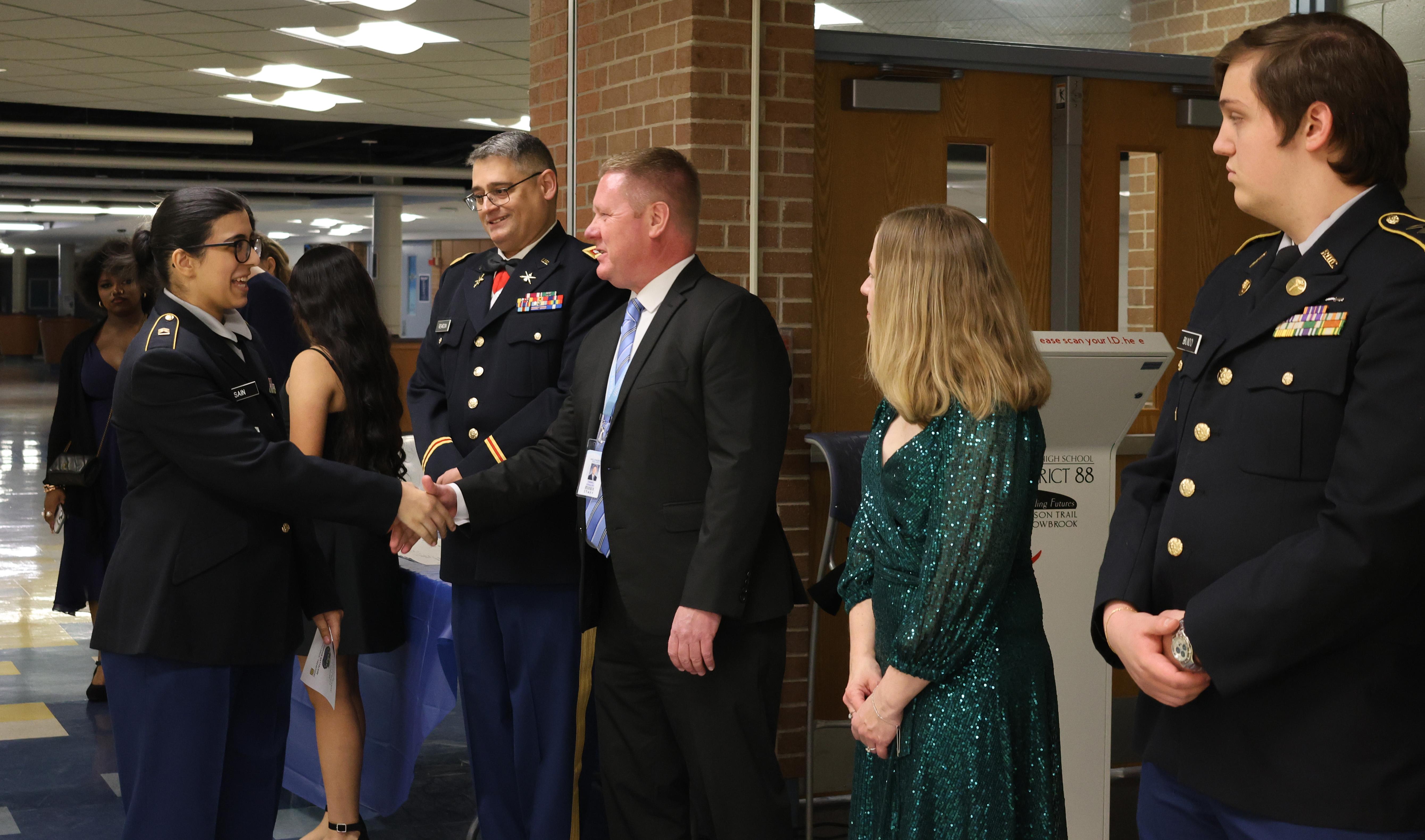 During the evening, Lieutenant Colonel Mike Reardon (Senior Army Instructor) and Willowbrook Principal Dr. Daniel Krause welcomed those in attendance after they entered through a reception line. Reardon also shared cadet successes and highlights of the program, which was implemented in December 2024. Participants and their guests enjoyed dinner, dancing and DJ services provided by Willowbrook parent Linda Polacek.