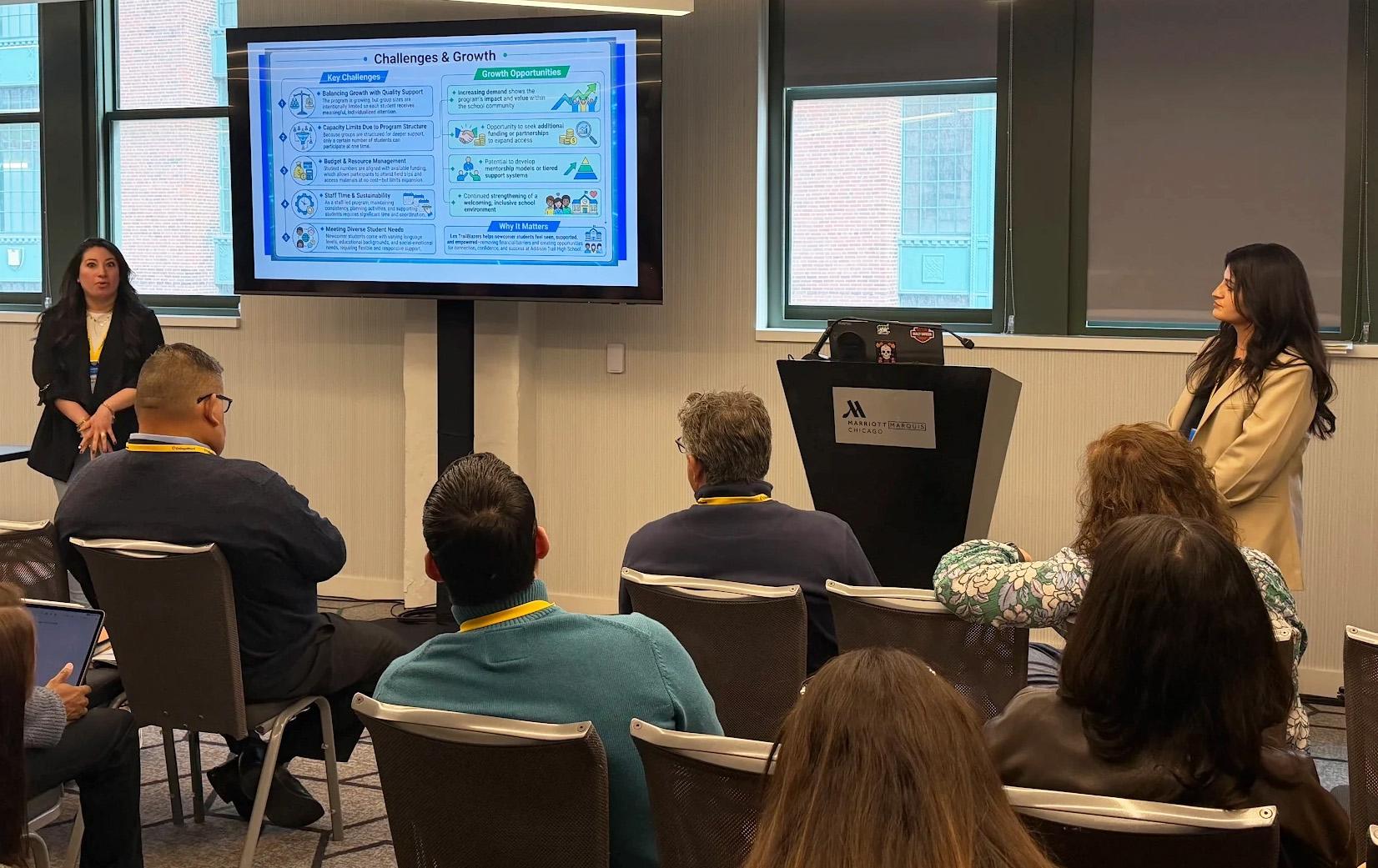 Addison Trail’s topic was “Hispanic Student & Parent Engagement, Empowerment & Enrichment … Together!” The group shared how the school uses a team approach to successfully connect with students, families and community. They discussed programs, clubs/extracurricular activities and events that have been implemented to foster belonging among students and families. This includes programming for Spanish-speaking parents/guardians, cultural celebrations, supports for newcomer students and more.