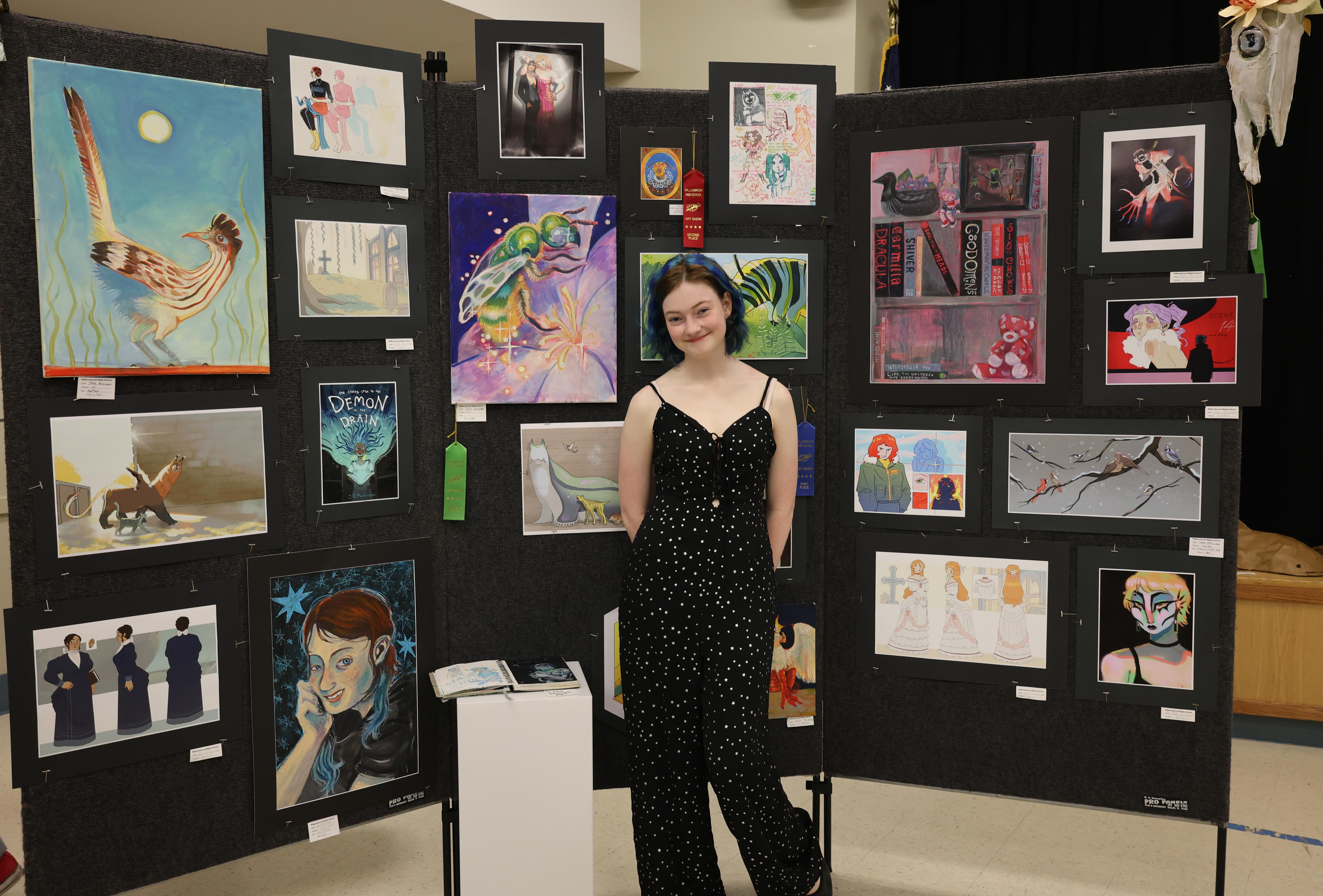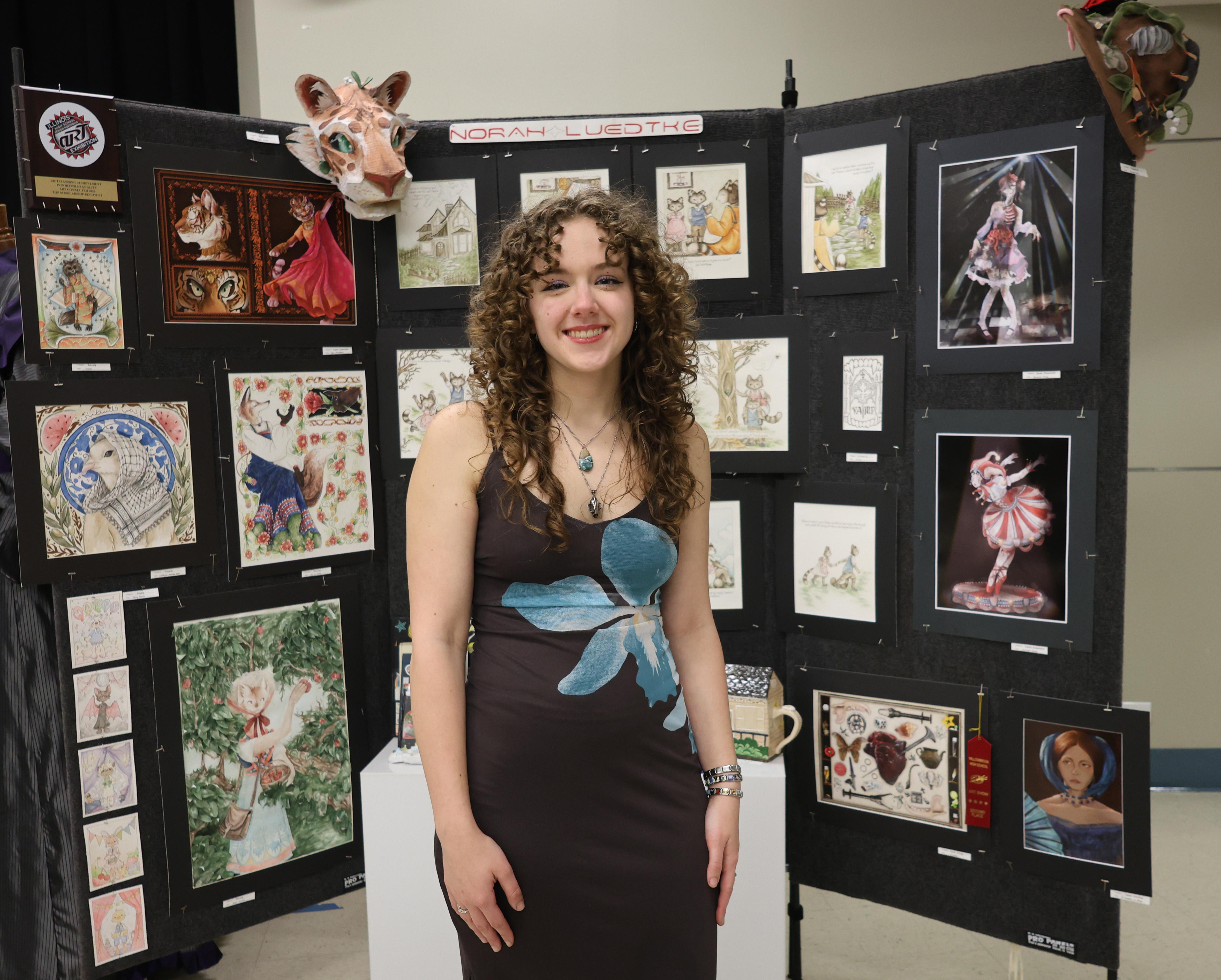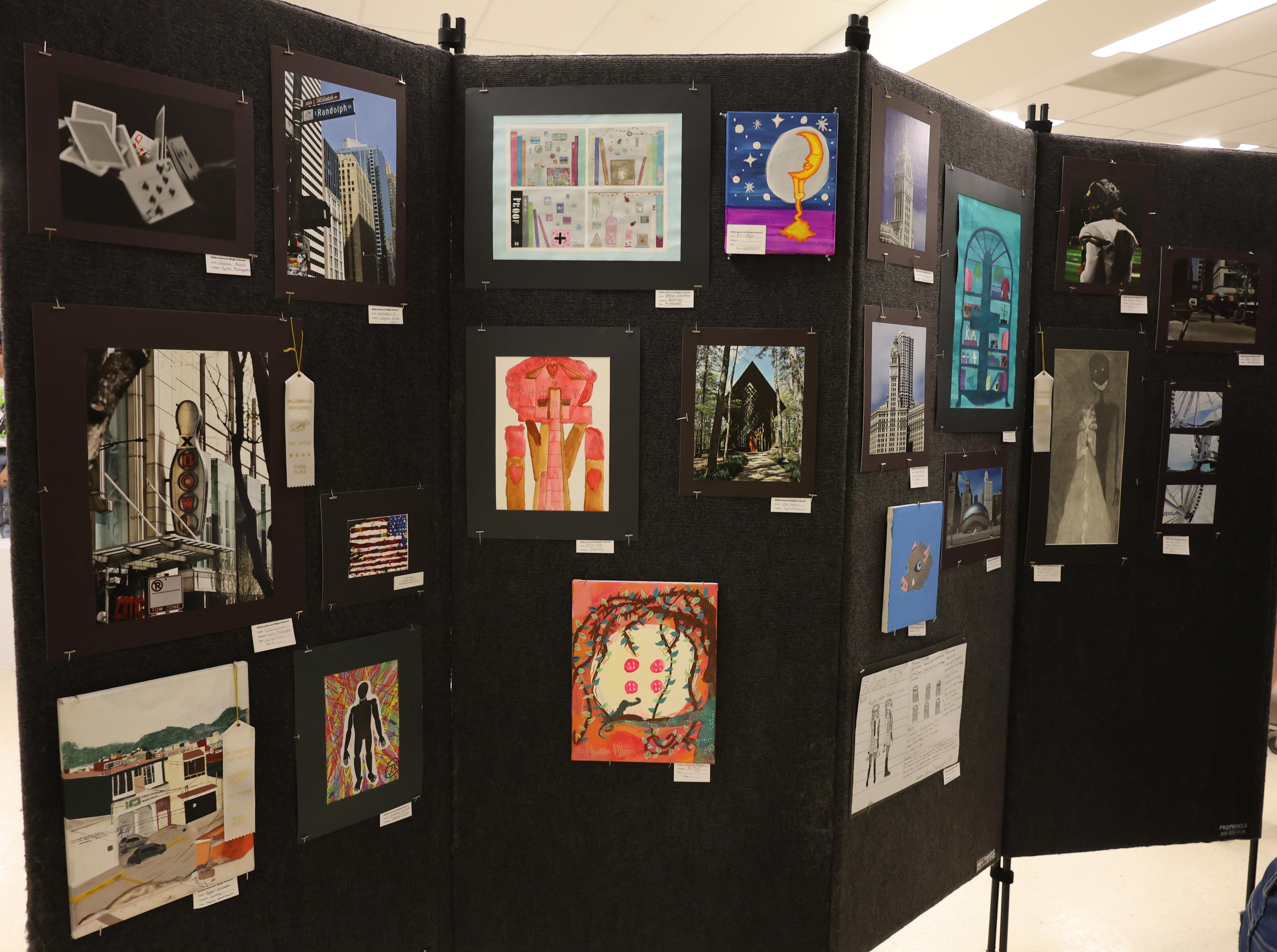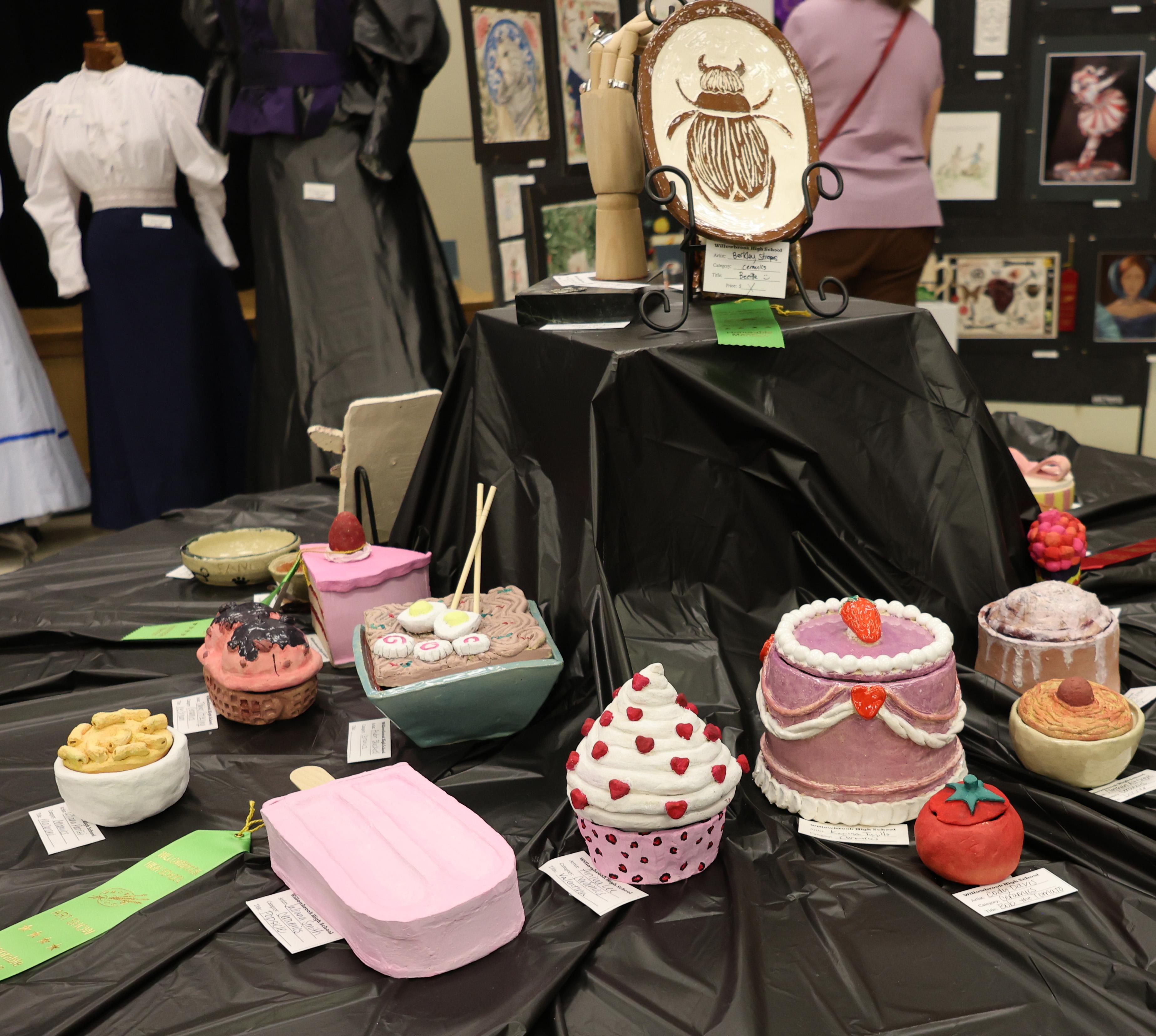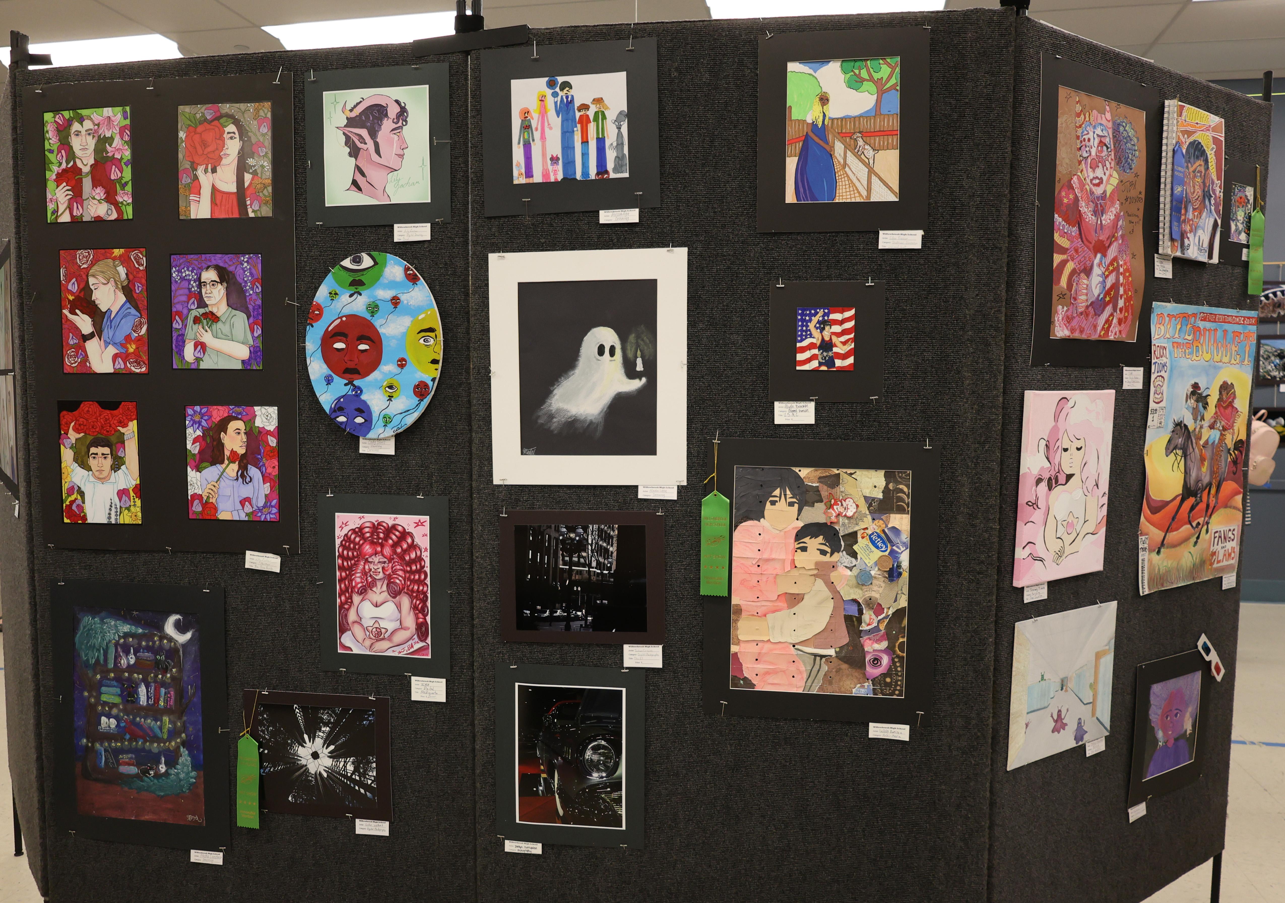 More than 350 pieces created by students were featured, and categories showcased included drawing, painting, mixed-media, photography, digital illustration/cartooning, sculpture/jewelry, ceramics, graphic design and fiber/costume design.
