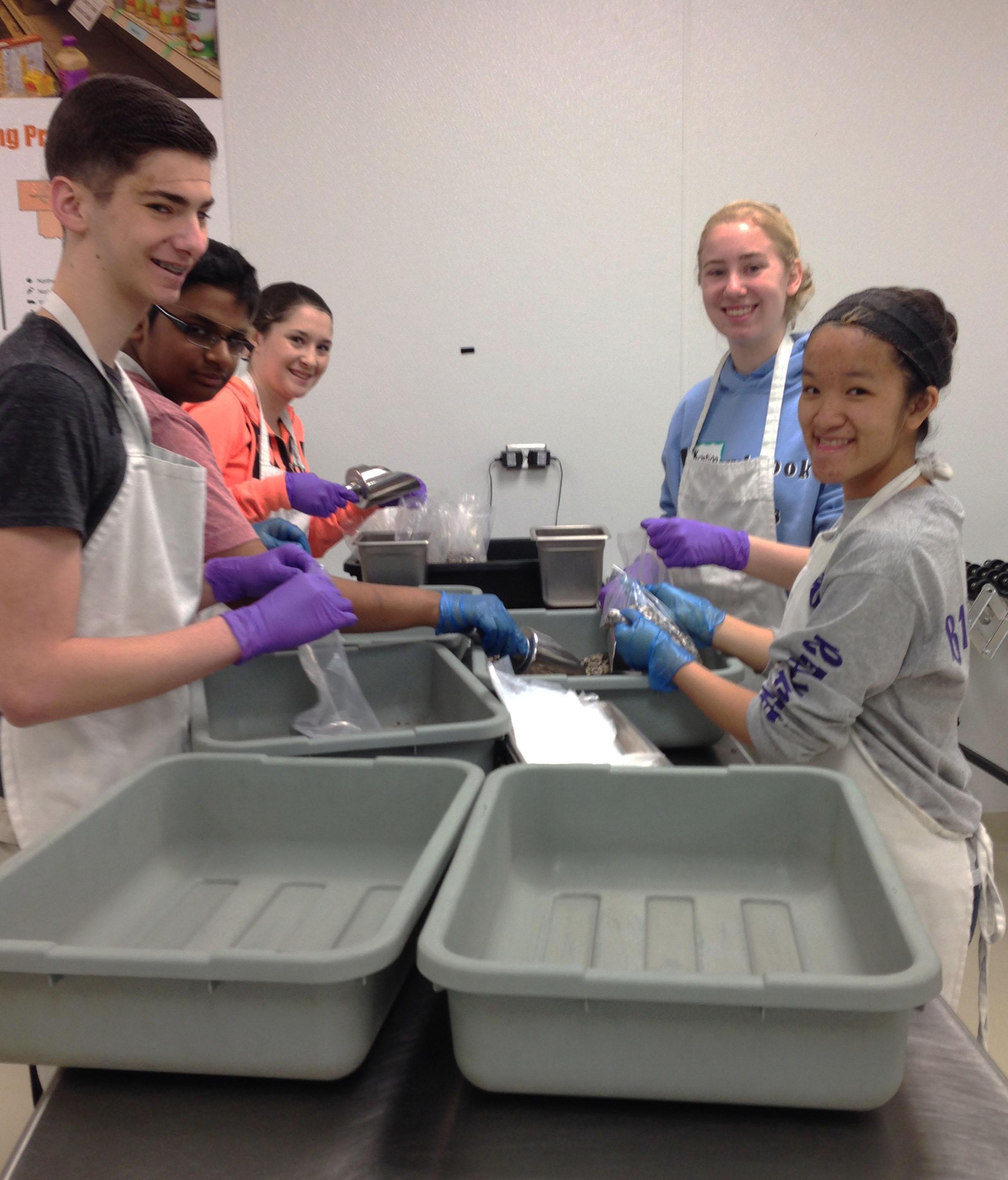 Students packaged and boxed dried black beans. In two hours of service time, they packed 1,824 pounds of food, which translates into 1,520 meals for hungry neighbors.