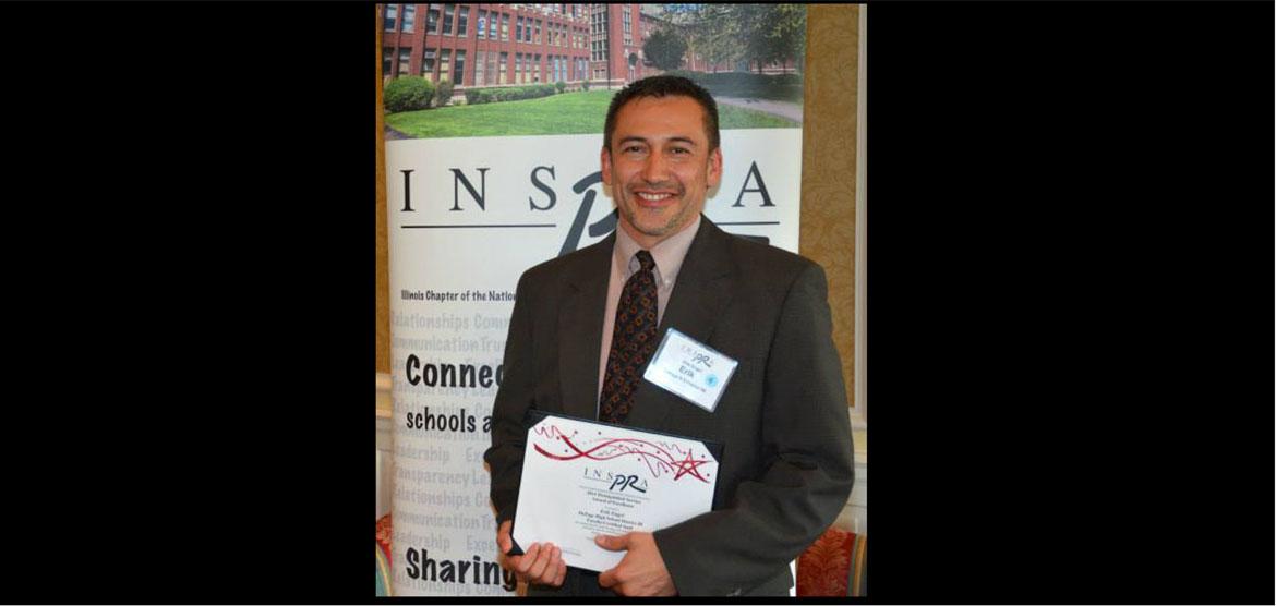 On May 2, Willowbrook social worker Erik Engel was recognized by the Illinois Chapter of the National School Public Relations Association (INSPRA) during the chapter’s annual Distinguished Service Awards.