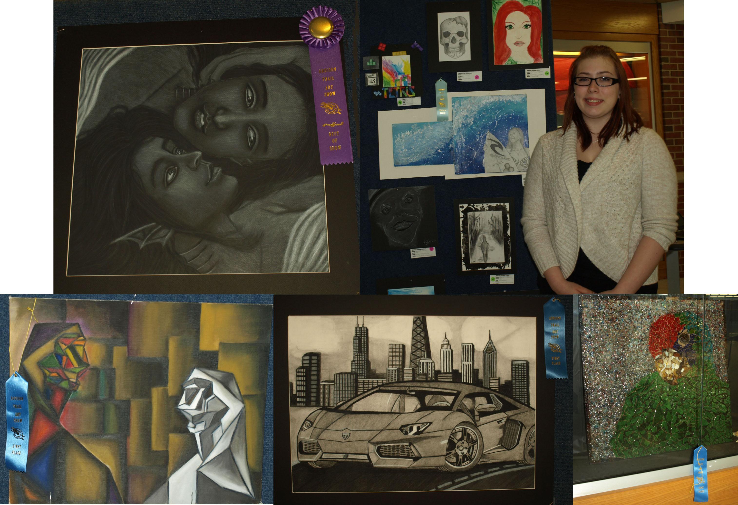 About 175 pieces created by Addison Trail students were showcased, as well as 40 pieces created by Indian Trail students. The Addison Trail pieces were judged, and the winners are: