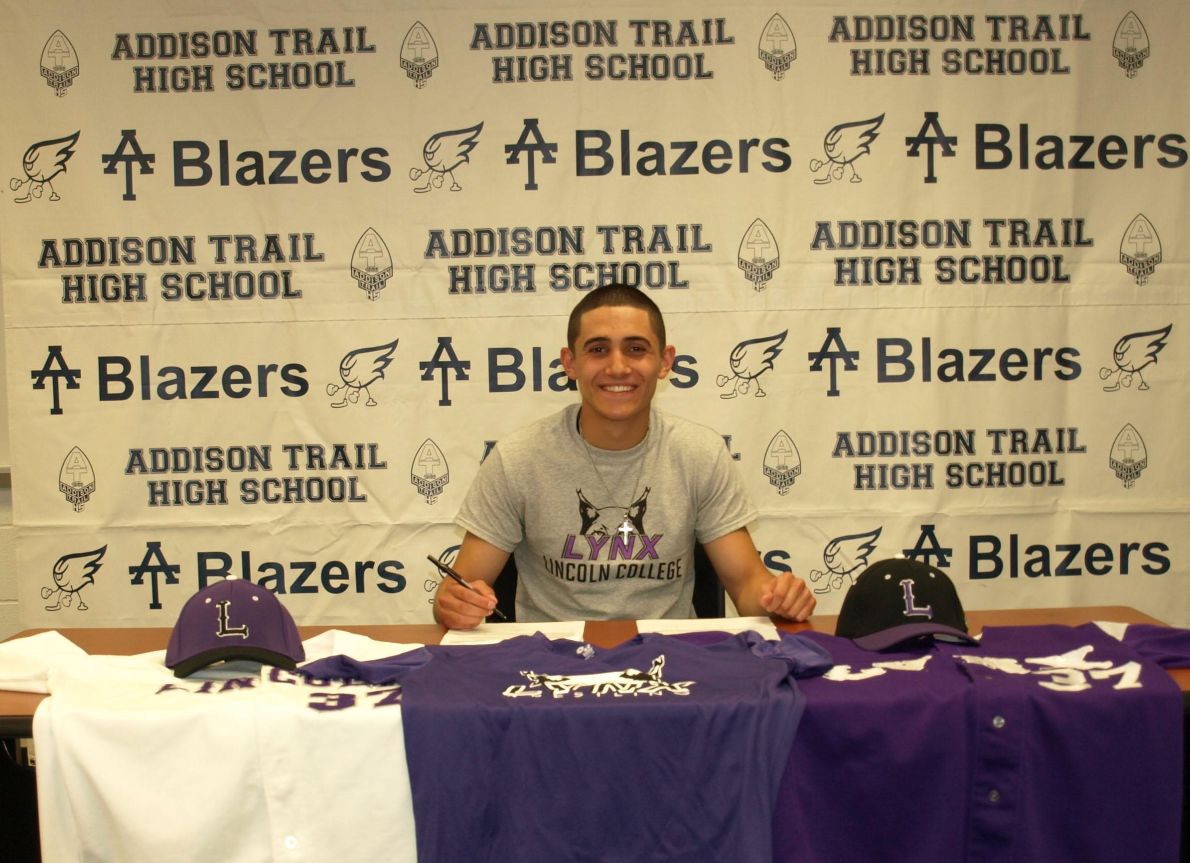 On May 20, Addison Trail senior Jaime Valdez signed to wrestle and play baseball for Lincoln College.