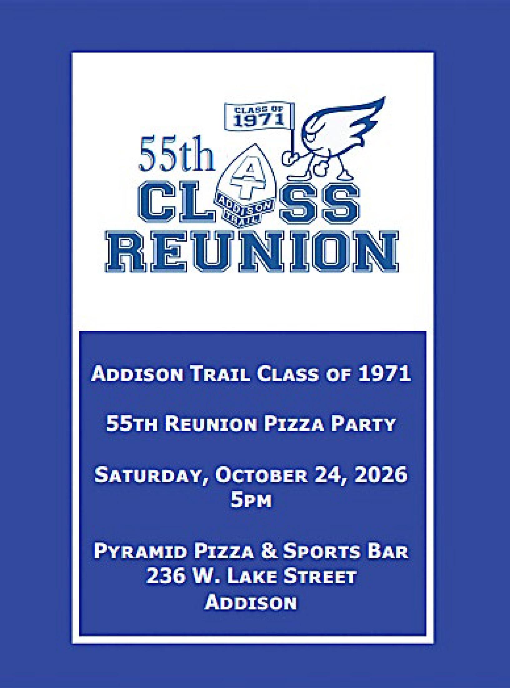 Attention, members of the Addison Trail class of 1971! Your 55-year reunion is being planned! See all the details below.