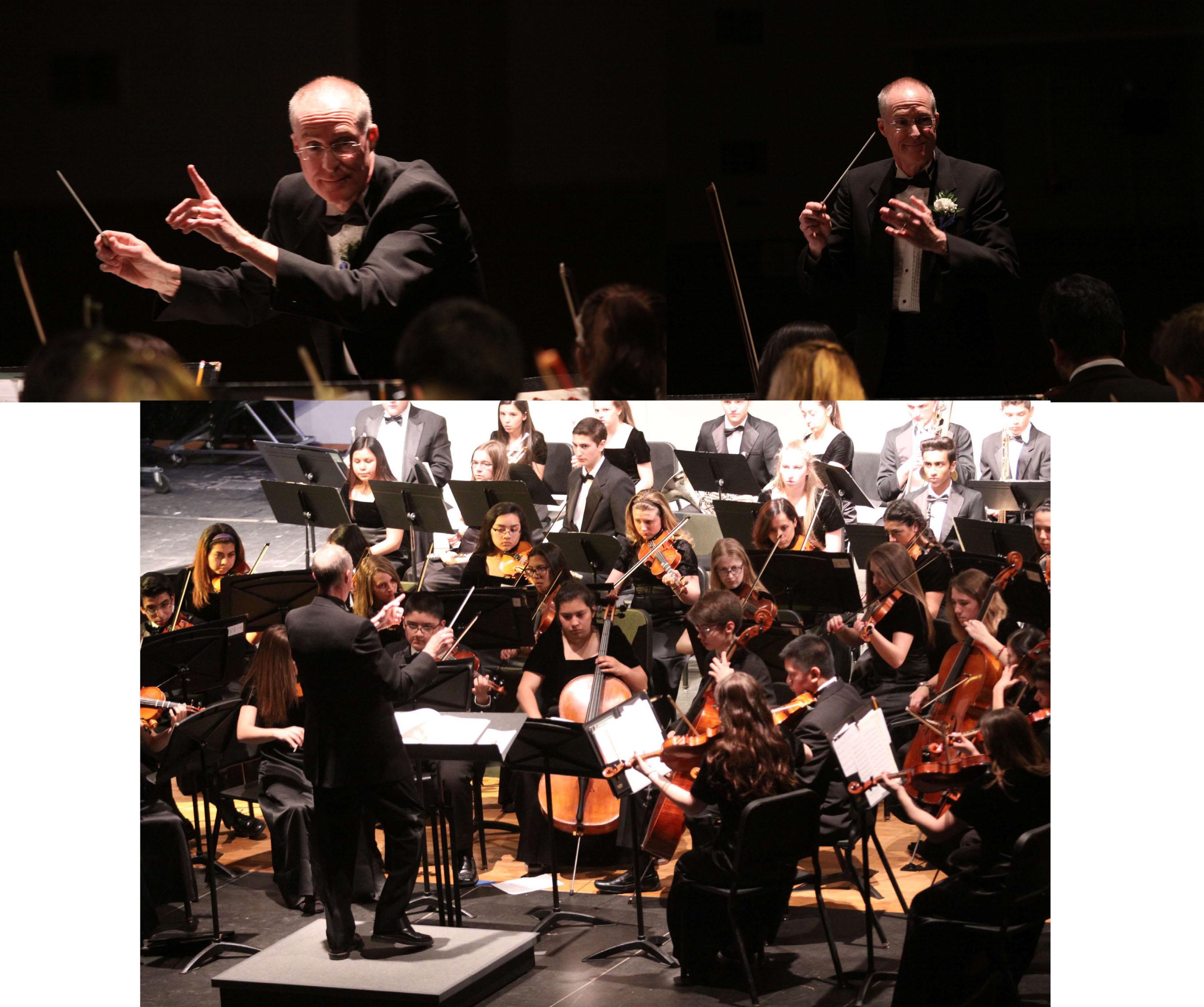Addison Trail Orchestra Director and Music Department Chair Dan O’Connell conducts the Addison Trail orchestras on April 28, his final concert before he retires at the end of this school year. O'Connell has dedicated more than 33 years to teaching in the Village of Addison. During the concert, the orchestras debuted a new piece entitled "Legacy" in honor of O'Connell's retirement and Addison Trail's upcoming 50th anniversary. Photos by HR Imaging