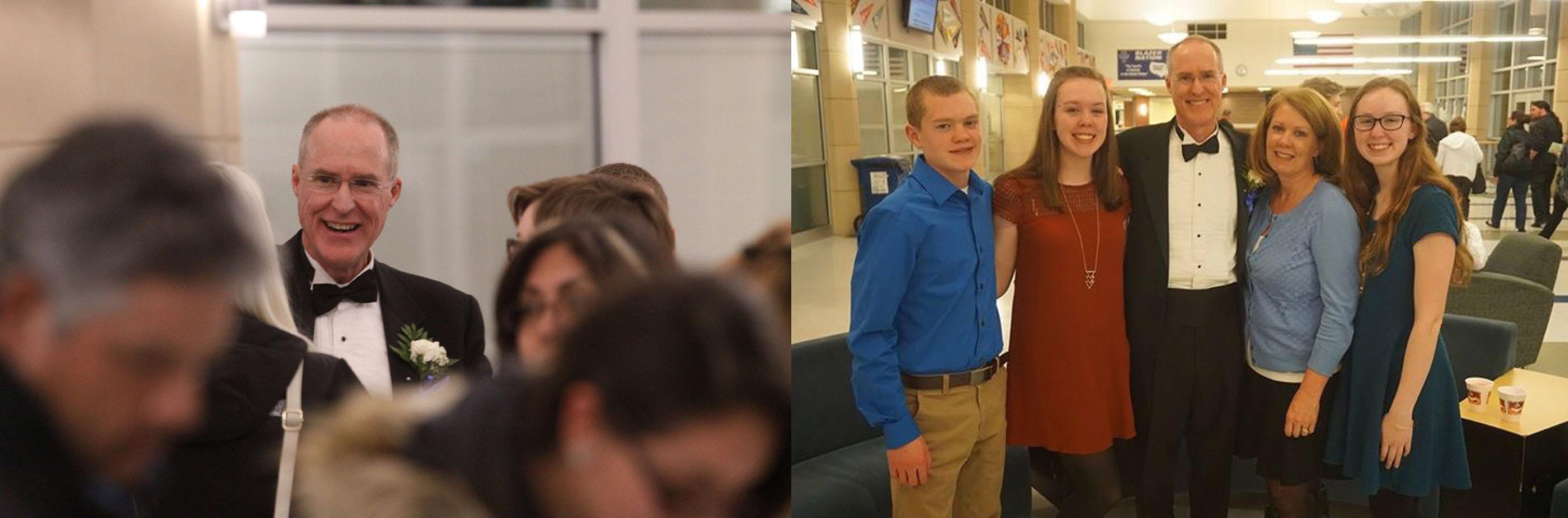 Left: Addison Trail Orchestra Director and Music Department Chair Dan O’Connell greets students, staff, alumni, parents/guardians and community members during a reception in his honor after his final concert on April 28. O'Connell will retire at the end of this school year after dedicating more than 33 years to teaching in the Village of Addison. Photo by HR Imaging