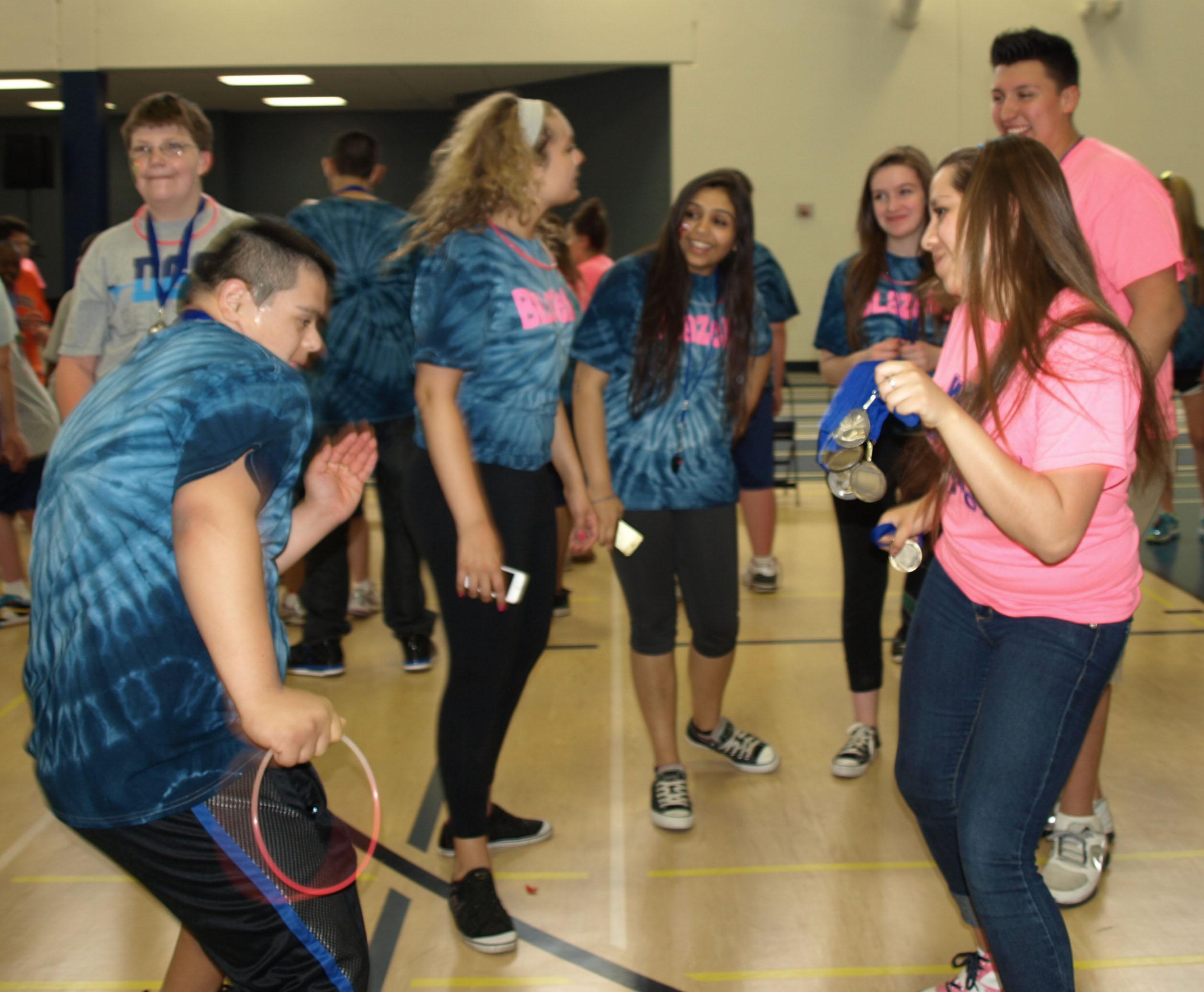 During the event, more than 460 special-needs students filled Addison Trail’s field house, gyms and tennis court area. The students were from 13 schools in the West Suburban Conference, and they participated in track and field events and a basketball tournament and also enjoyed games and moon jumps.