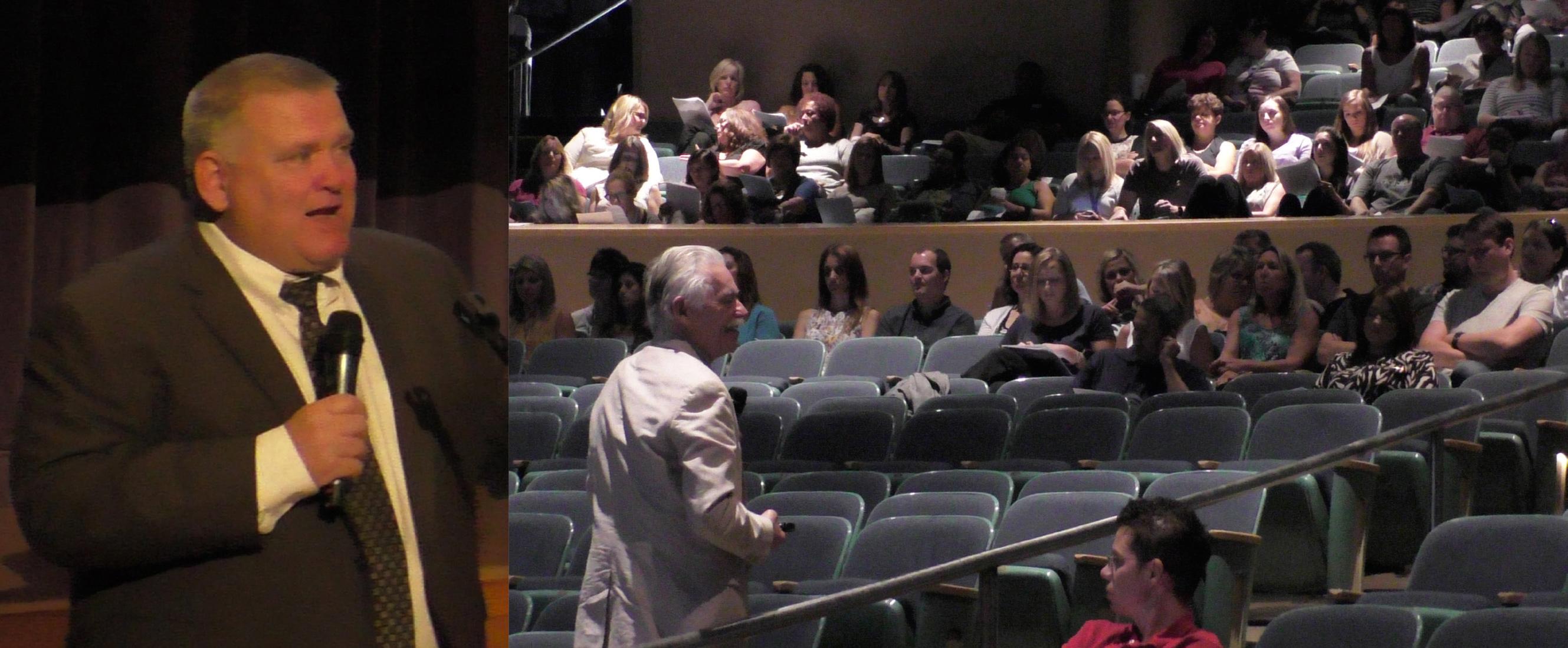 Left: District 88 Superintendent Dr. Scott Helton welcomes District 88 staff members to the 2016-17 school year during Institute Day on Aug. 15. Right: Gary Howard from the Gary Howard Equity Institute works with District 88 staff members to continue the district's focus on inclusion, equity and excellence for all students.