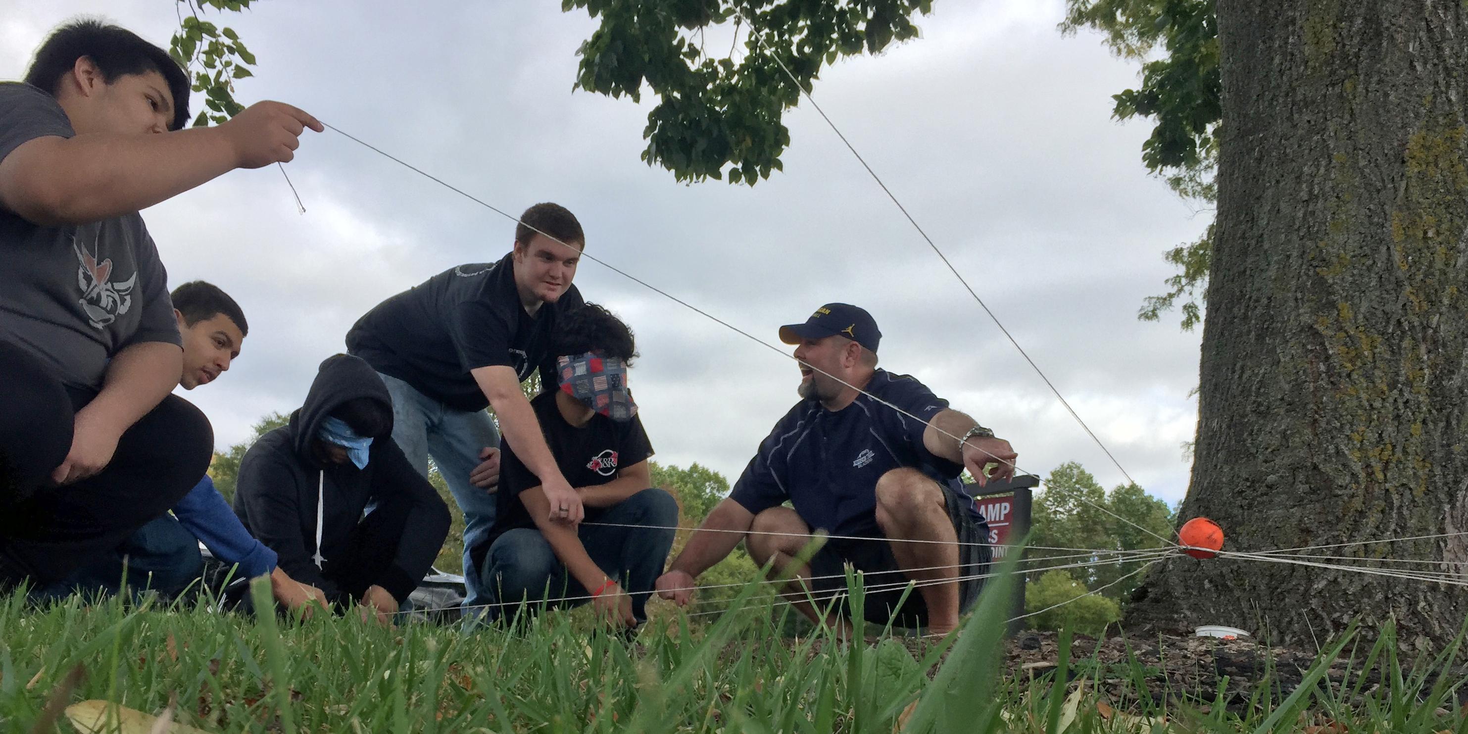 Addison Trail ACHIEVE teacher Paul Parpet Jr. (right) assists students during a teambuilding activity on Oct. 7. The event was part of the ACHIEVE program’s partnership with Chicago Voyagers.