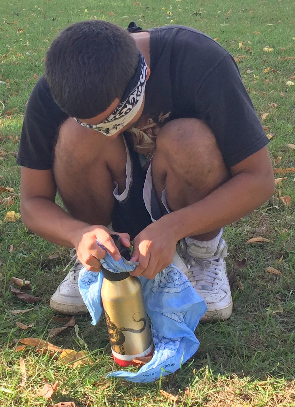Addison Trail junior Christian Pinedo participates in a teambuilding activity on Oct. 7. The event was part of Addison Trail ACHIEVE program’s partnership with Chicago Voyagers.