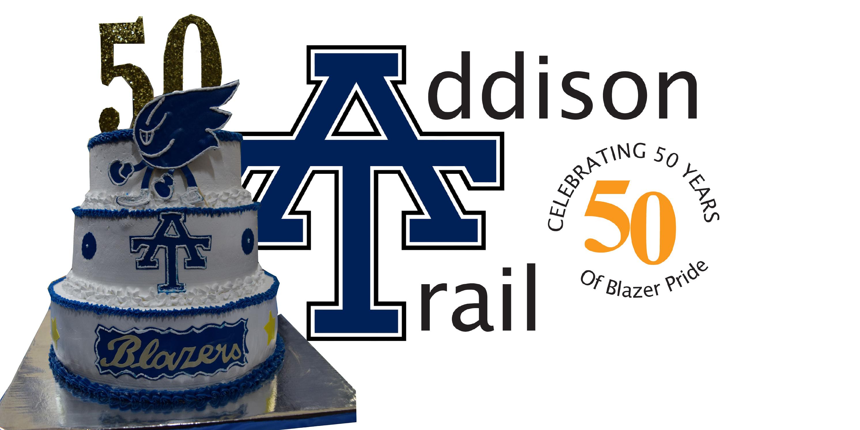 Calling all Addison Trail High School alumni! You're invited to attend a "Blazer Bash" Super-Reunion (all years) to celebrate 50 years of Blazer Pride! The 2016-17 school year has featured a variety of events and programs to recognize the school’s 50th anniversary, and you’re invited to the “Blazer Bash” as our last get-together of the year. To register, click the link below. Be sure to spread the word to your fellow alumni!