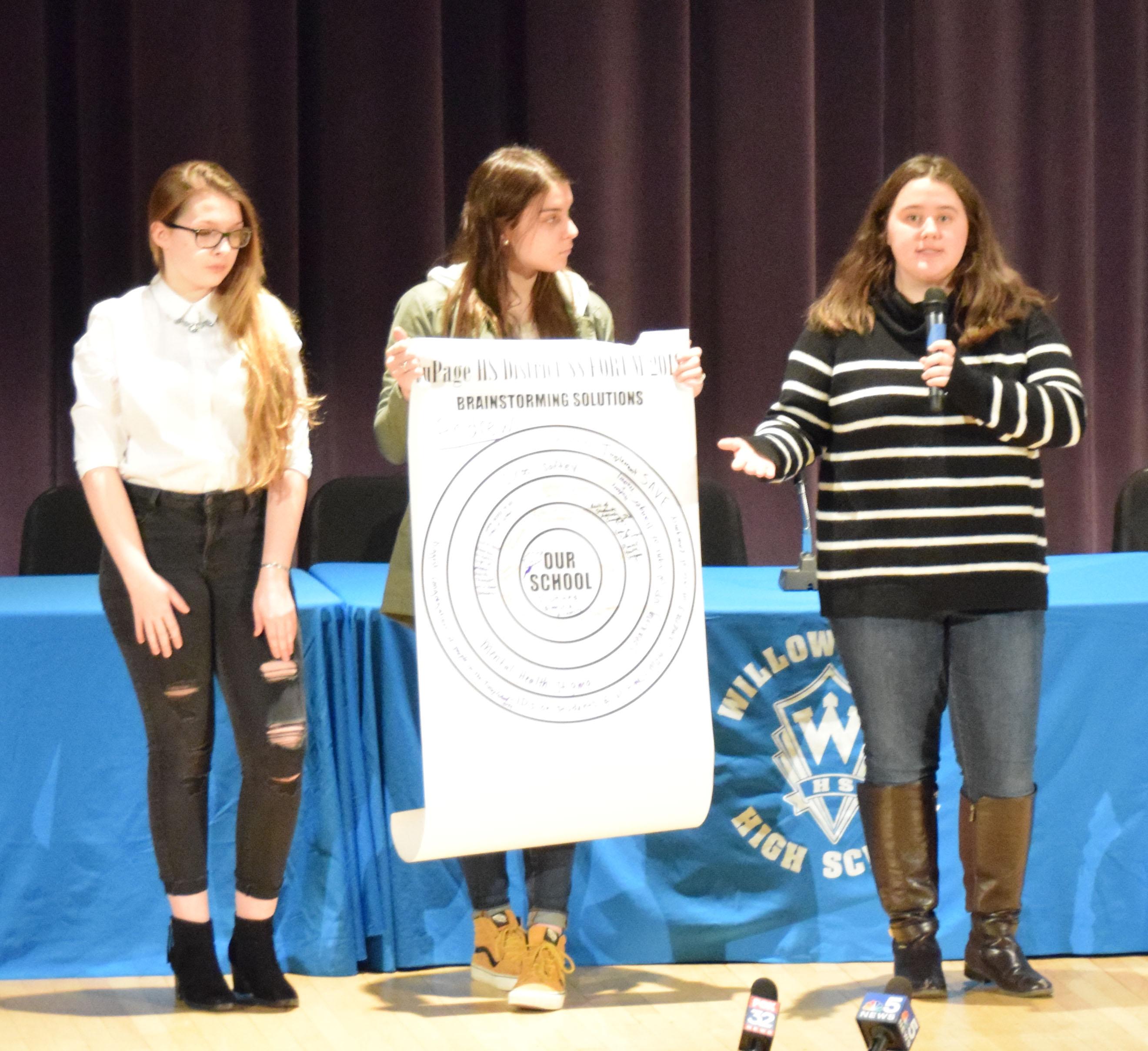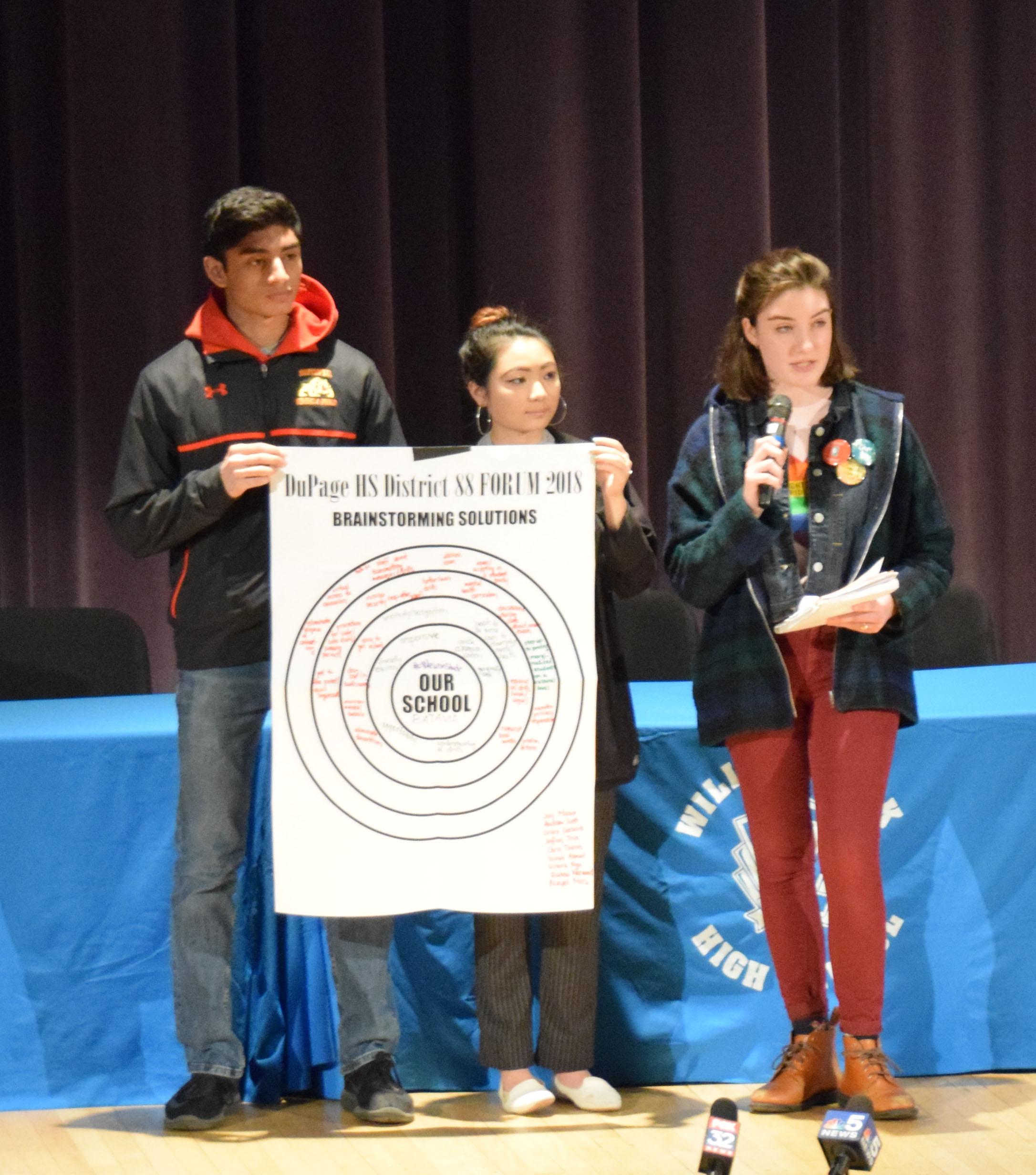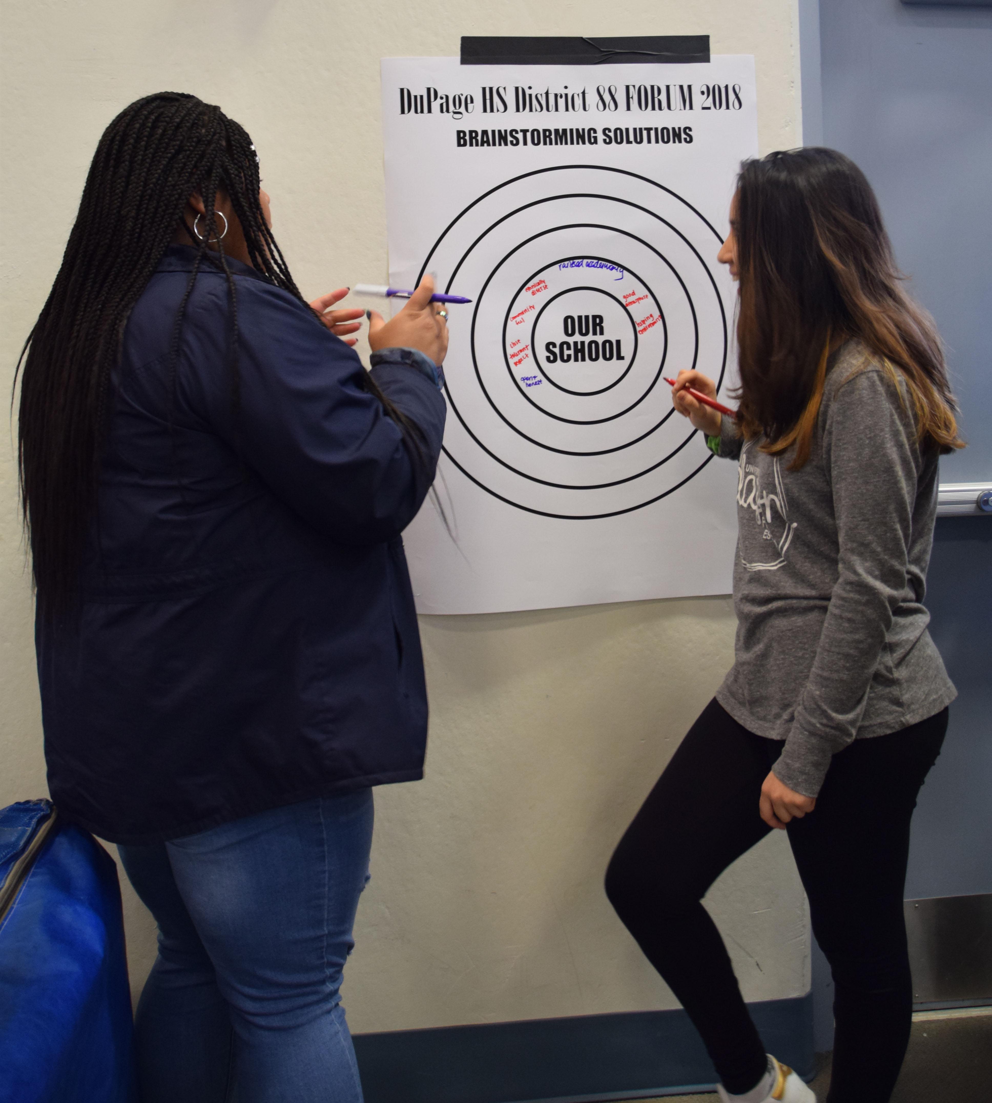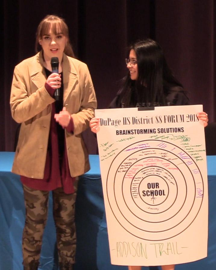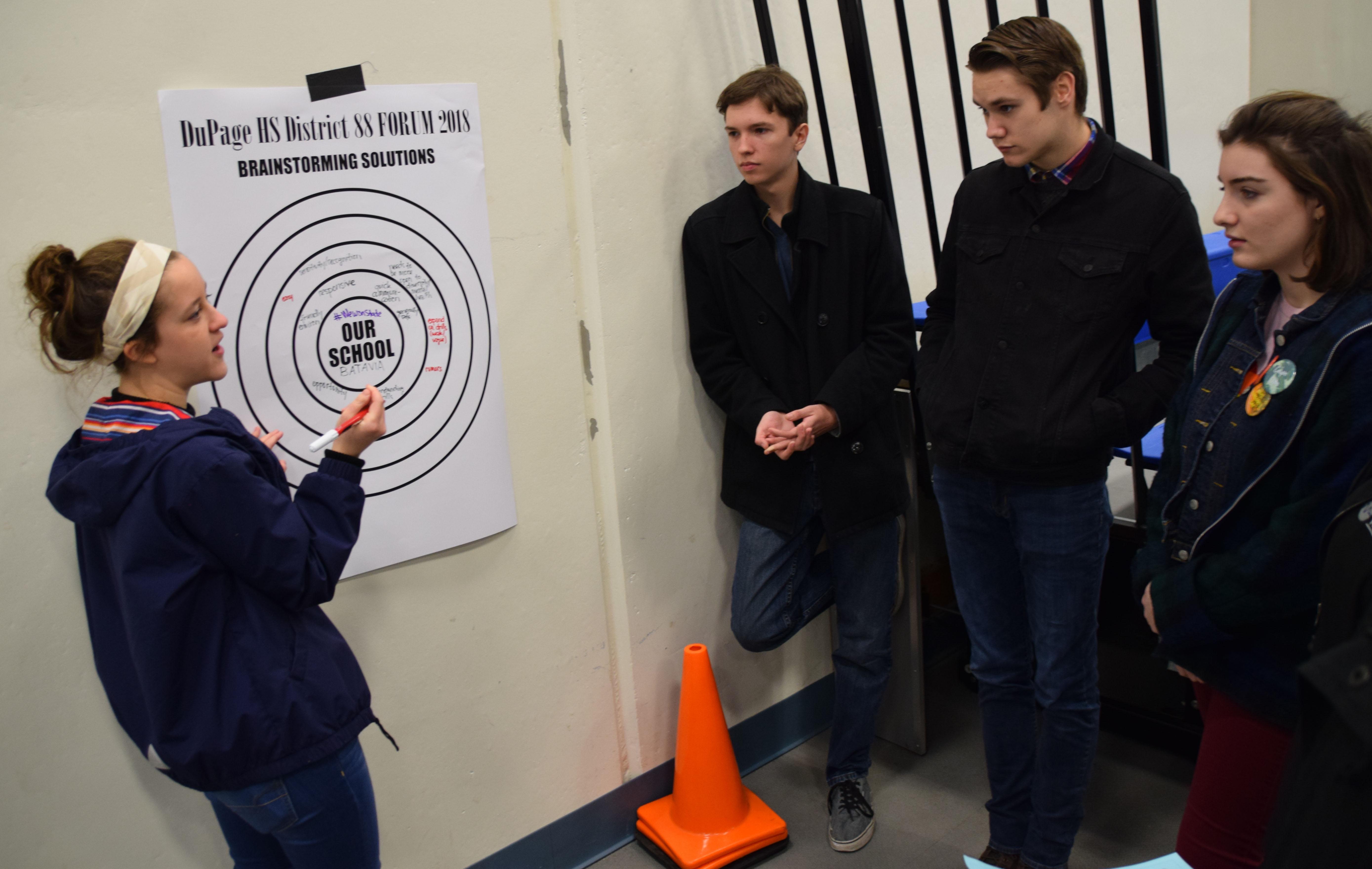 We had about 400 student leaders from 28 Chicago-area high schools (including our two schools, Addison Trail and Willowbrook) come together for a day of conversation and planning regarding school safety during a forum at Willowbrook. Participants shared their voices and thoughts on local and national issues regarding this topic, left with an action plan to take back to their school and had an opportunity to speak with local and state civic leaders and legislators, as well as area first responders.