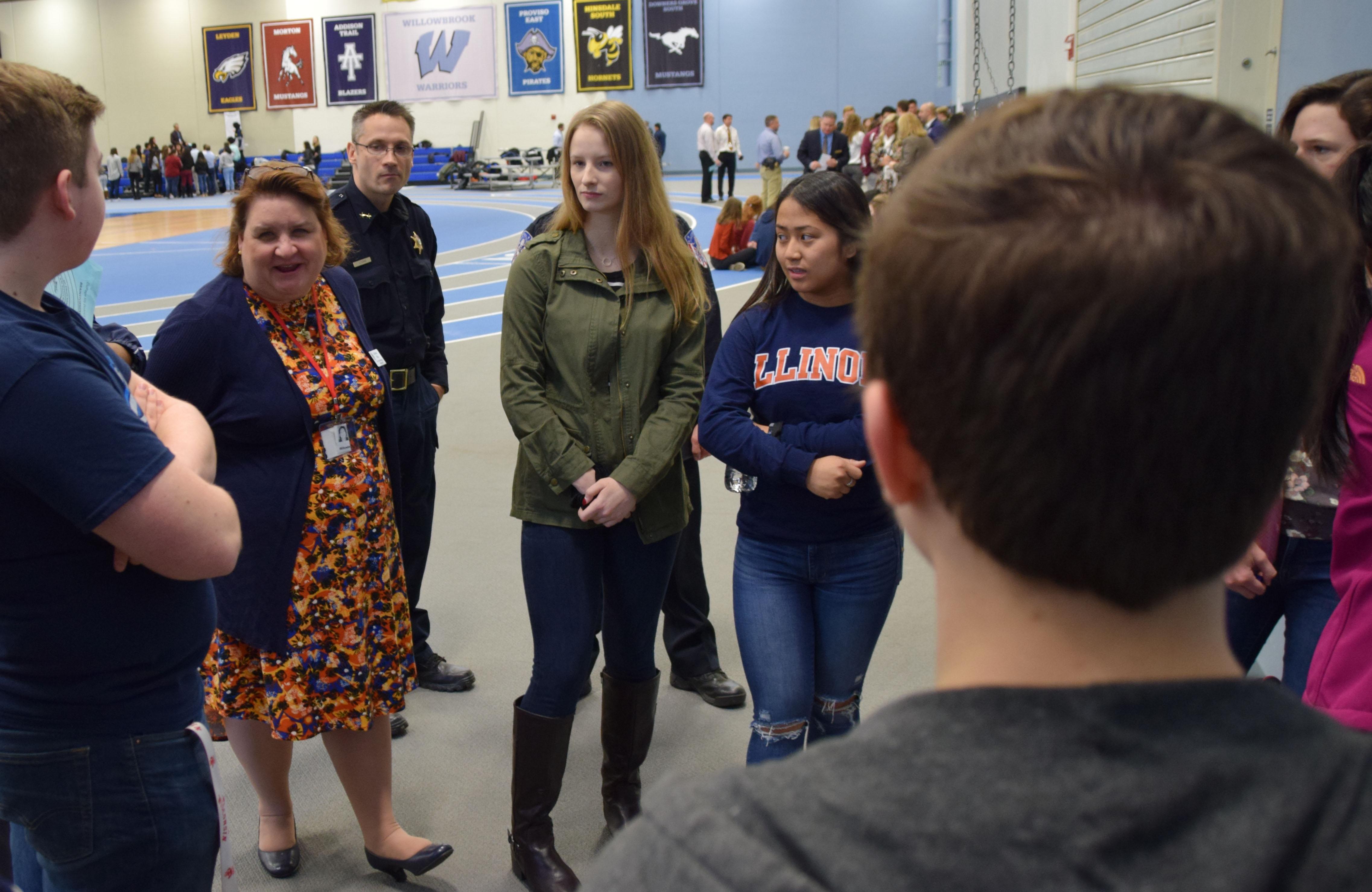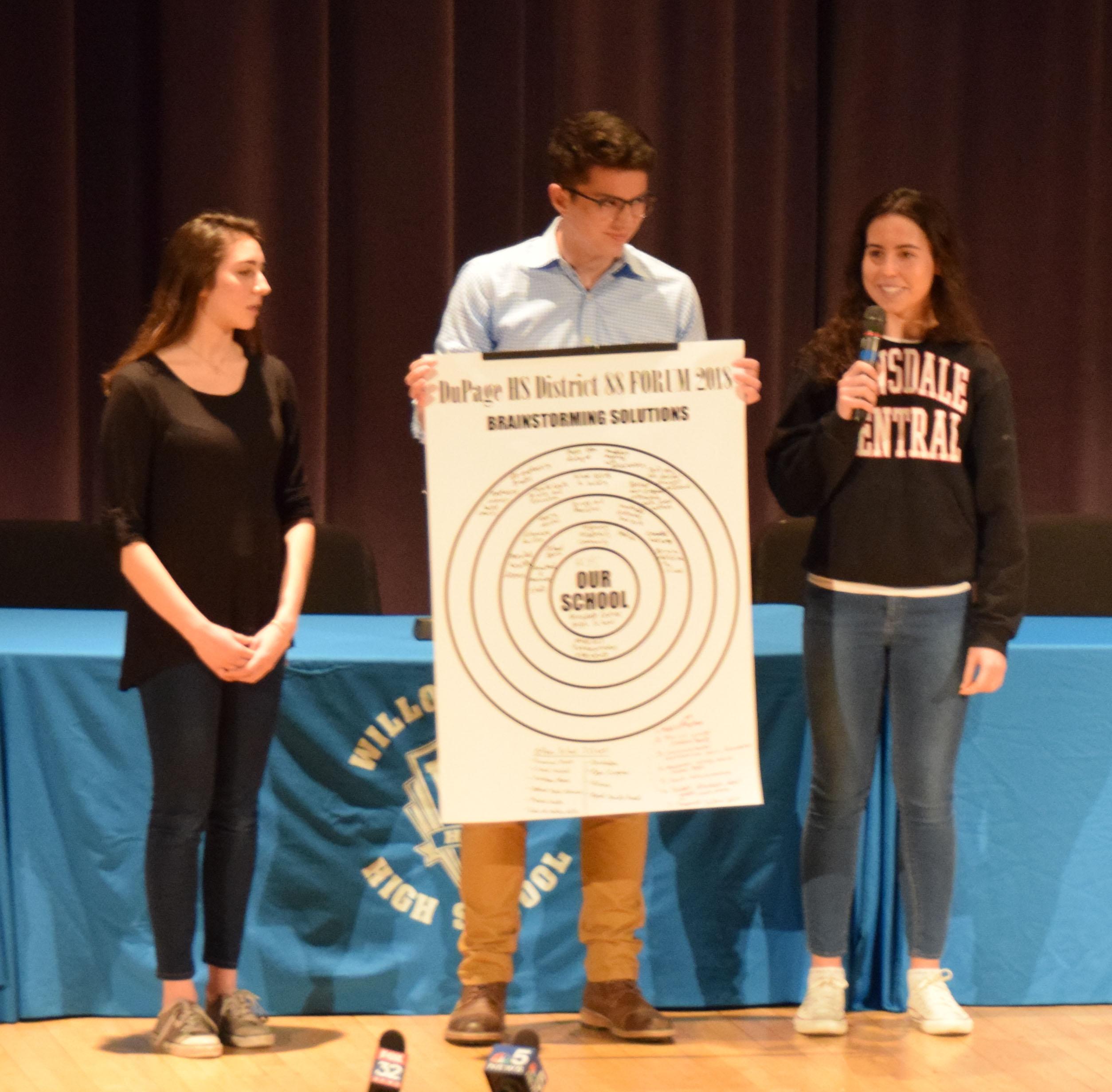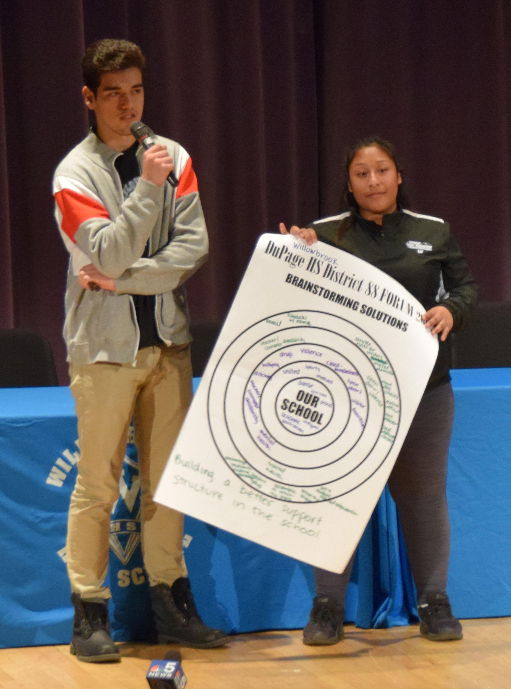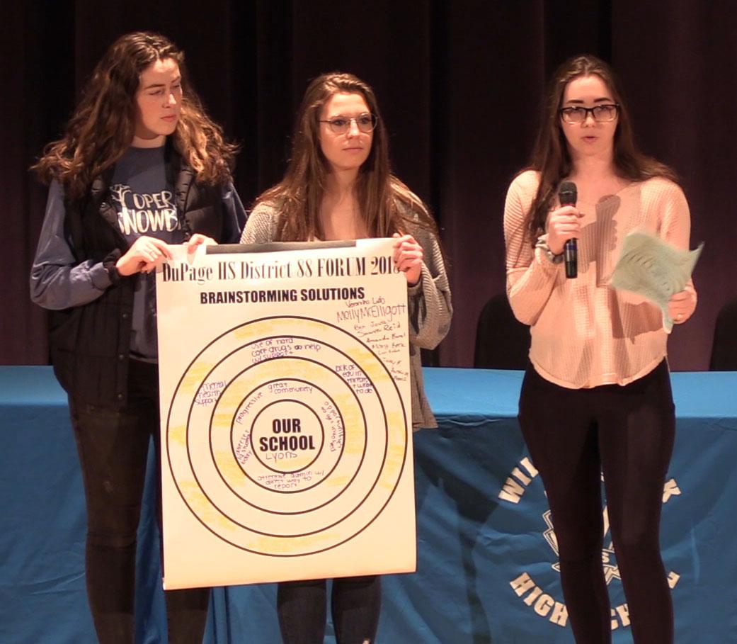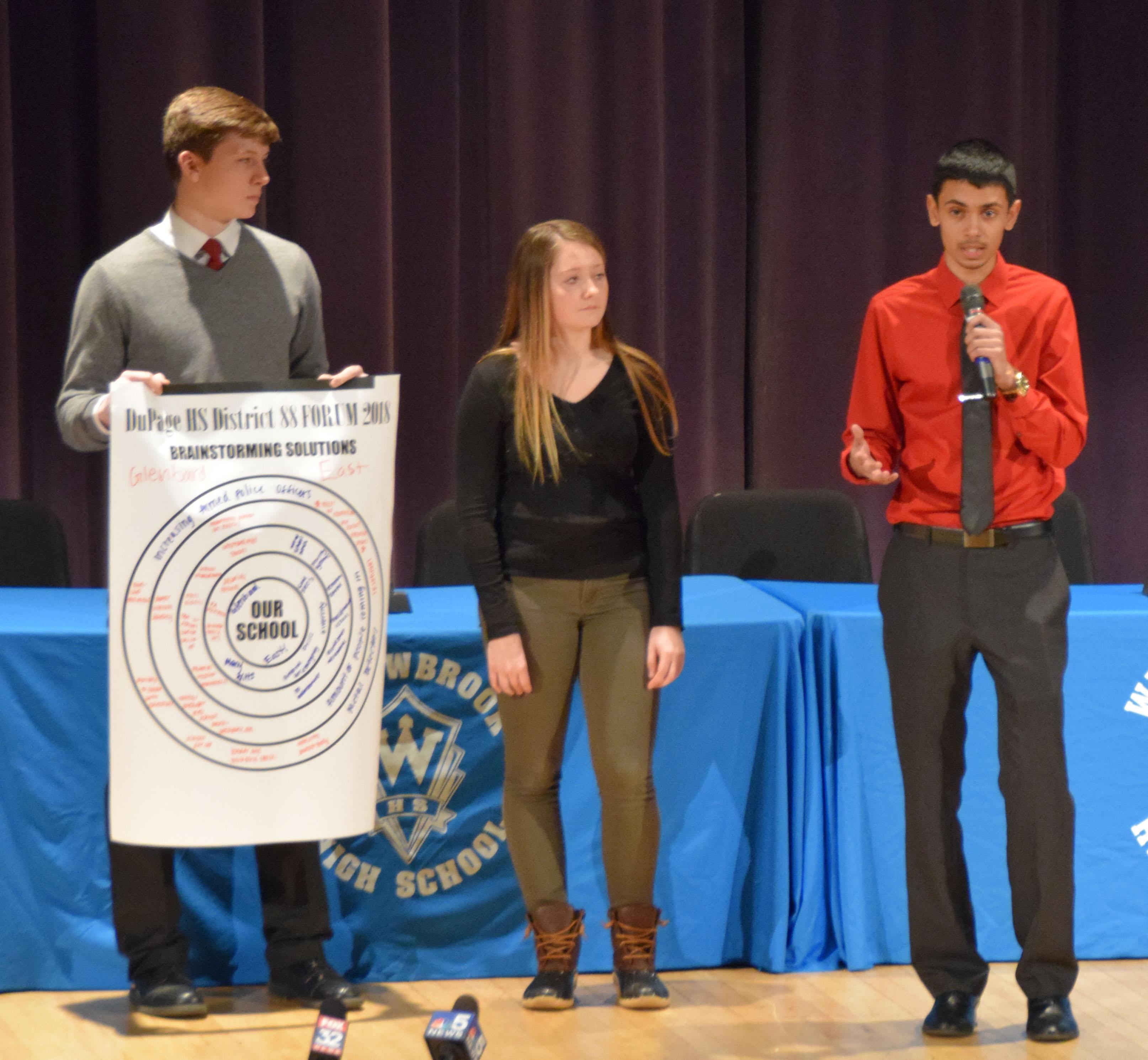We had about 400 student leaders from 28 Chicago-area high schools (including our two schools, Addison Trail and Willowbrook) come together for a day of conversation and planning regarding school safety during a forum at Willowbrook. Participants shared their voices and thoughts on local and national issues regarding this topic, left with an action plan to take back to their school and had an opportunity to speak with local and state civic leaders and legislators, as well as area first responders.