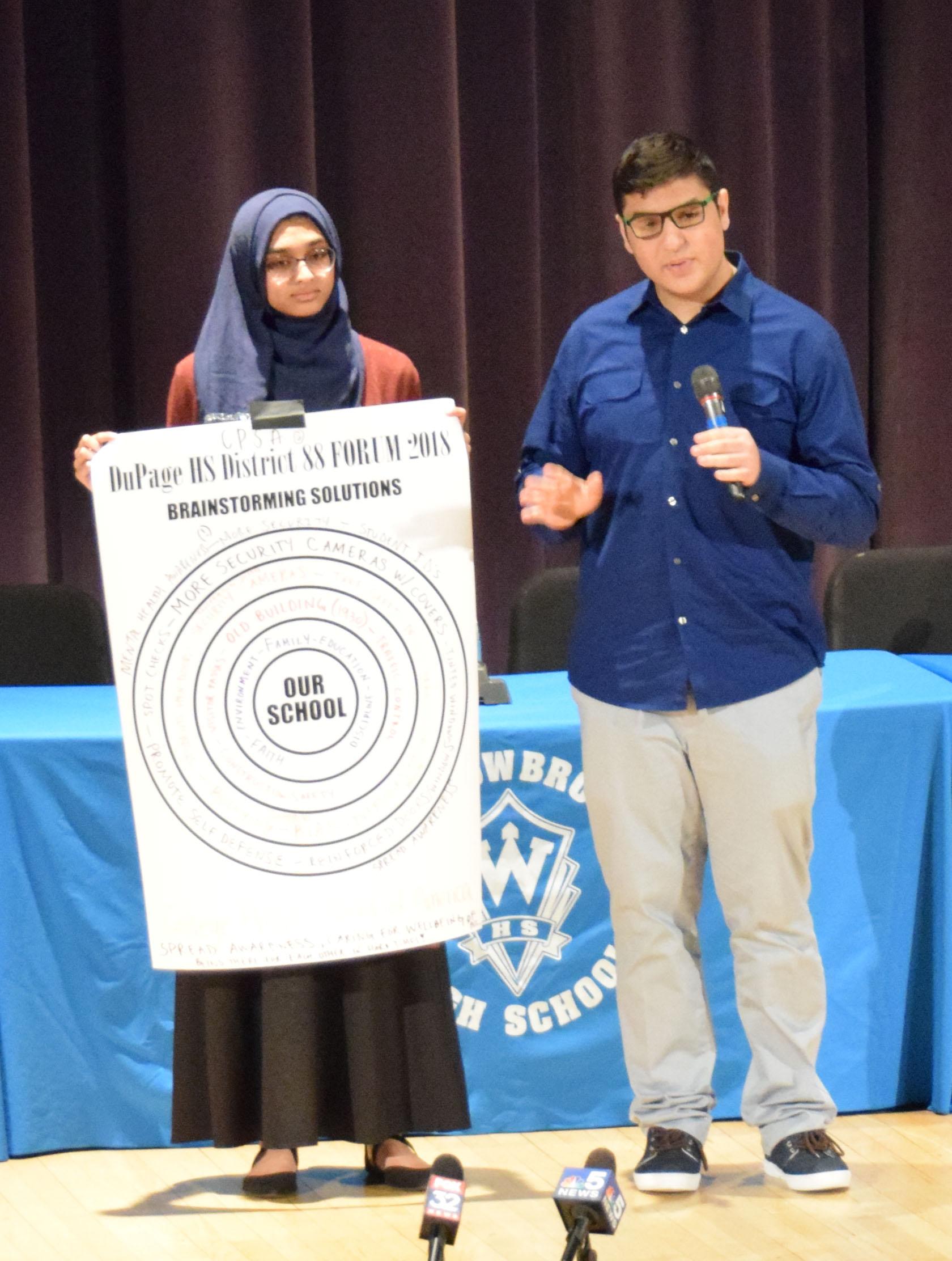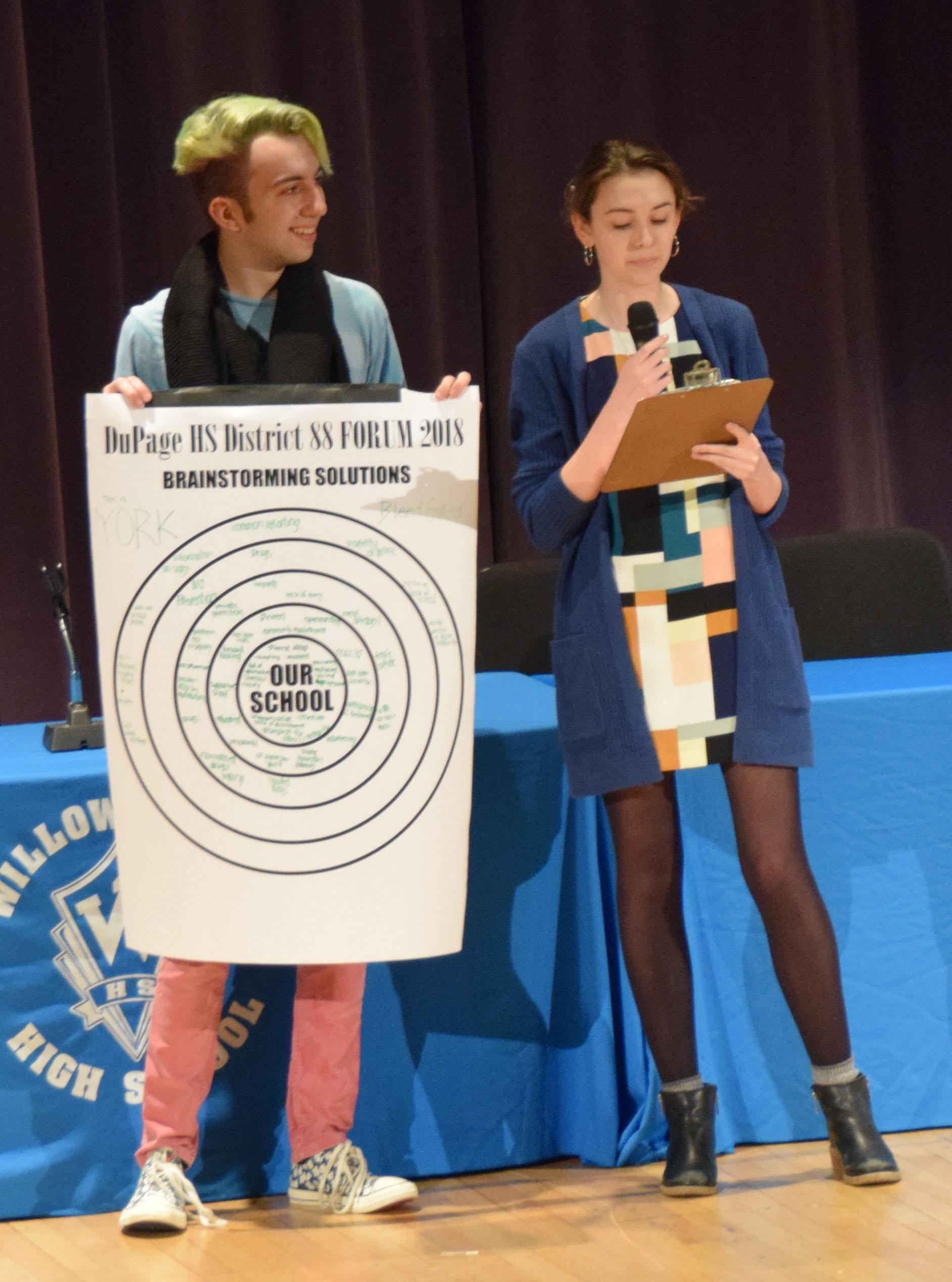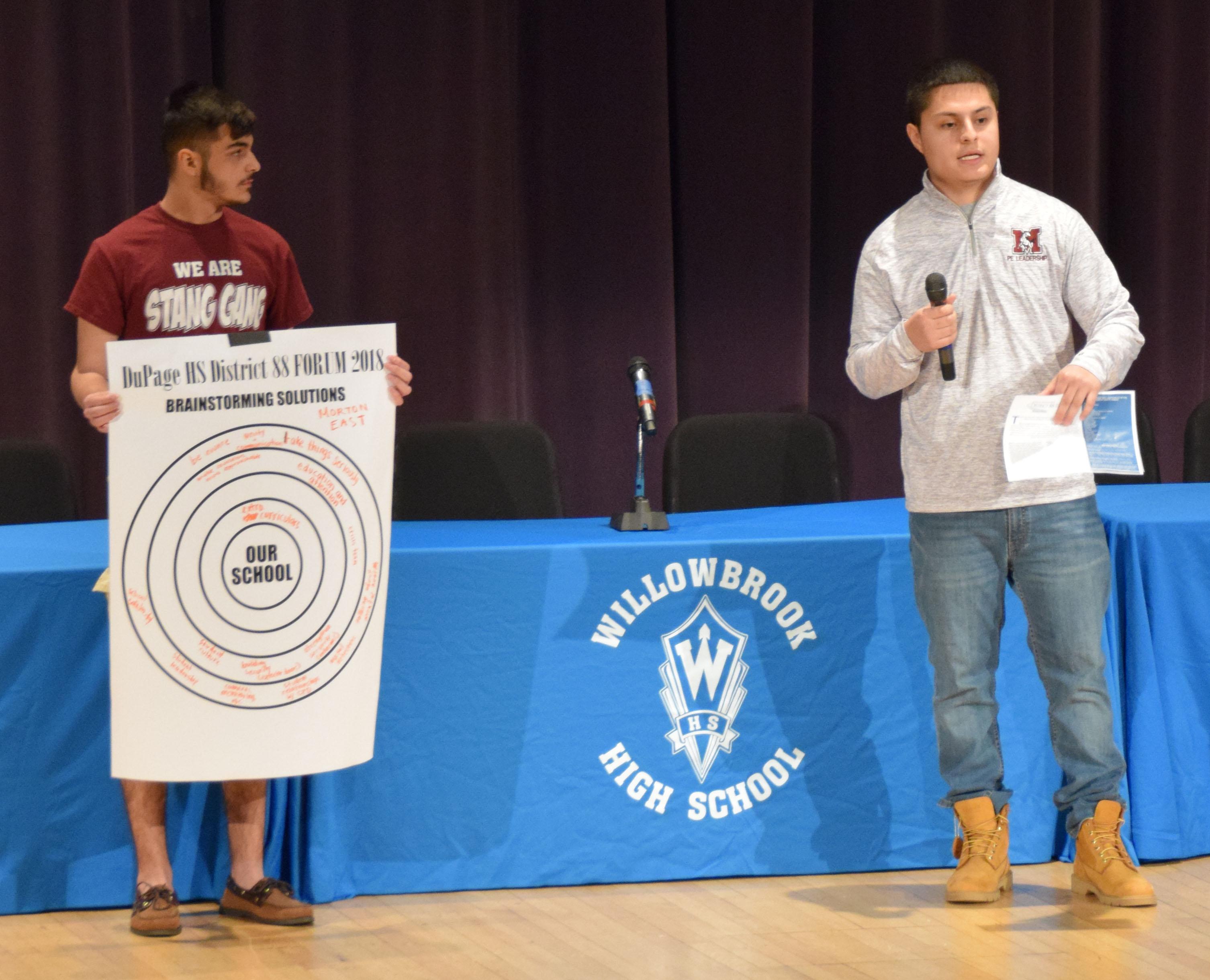 A panel of local legislators, village leaders and first responders then answered student-generated questions. Addison Trail social studies teacher Laura Magnavite and Willowbrook social studies Department Head Pete Montgomery served as moderators to guide the question-and-answer session.
