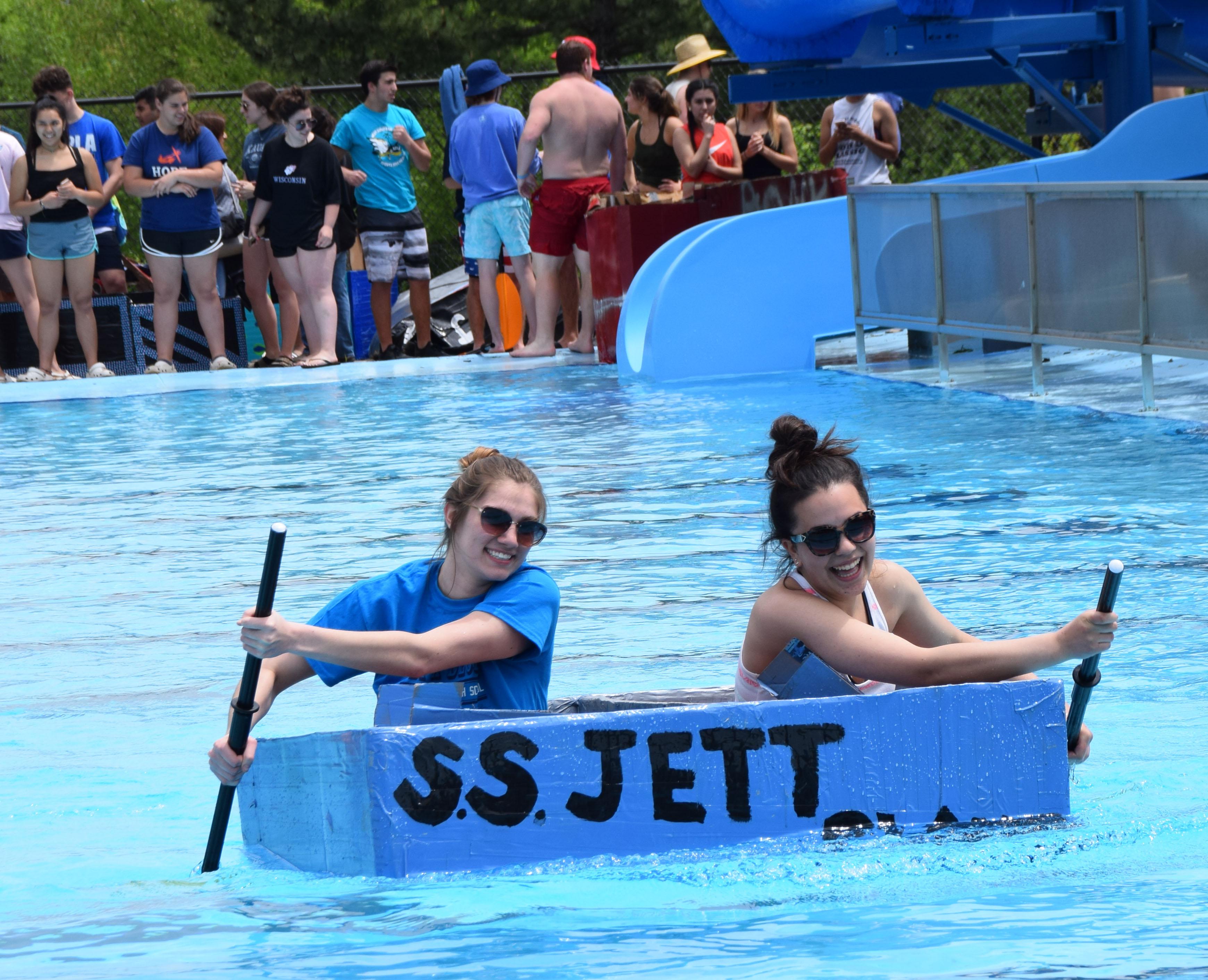 On May 18, about 200 students from Addison Trail and Willowbrook competed in a Cardboard Regatta at Jefferson Pool in Villa Park.